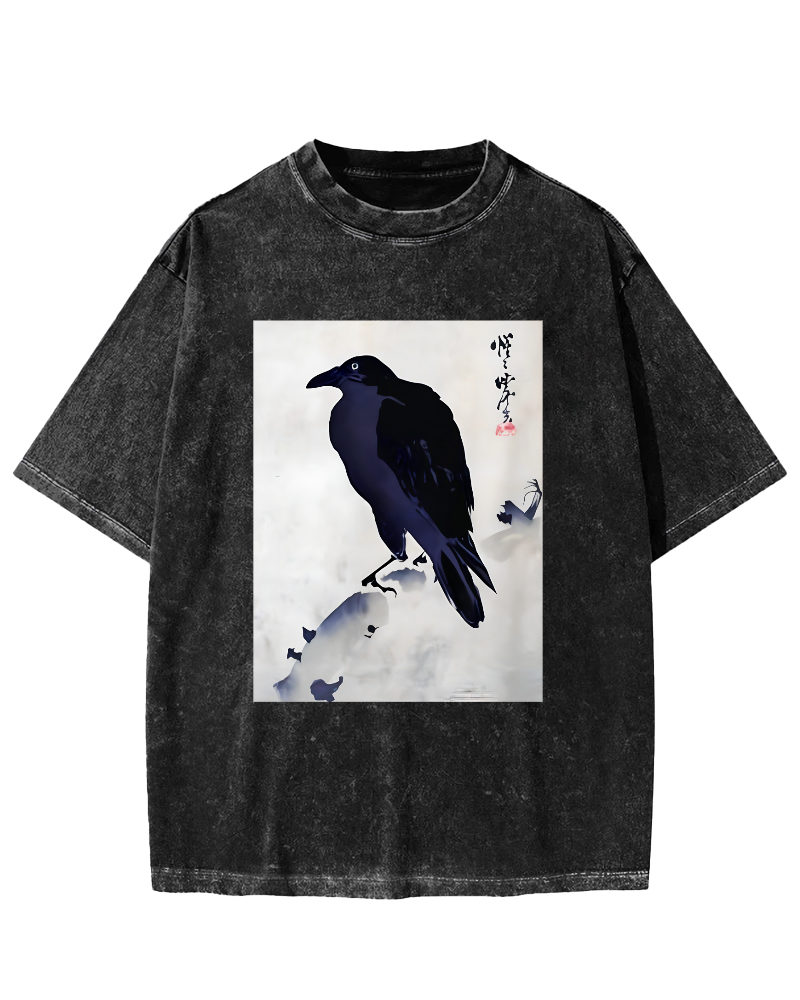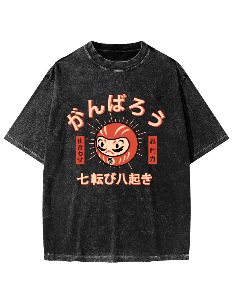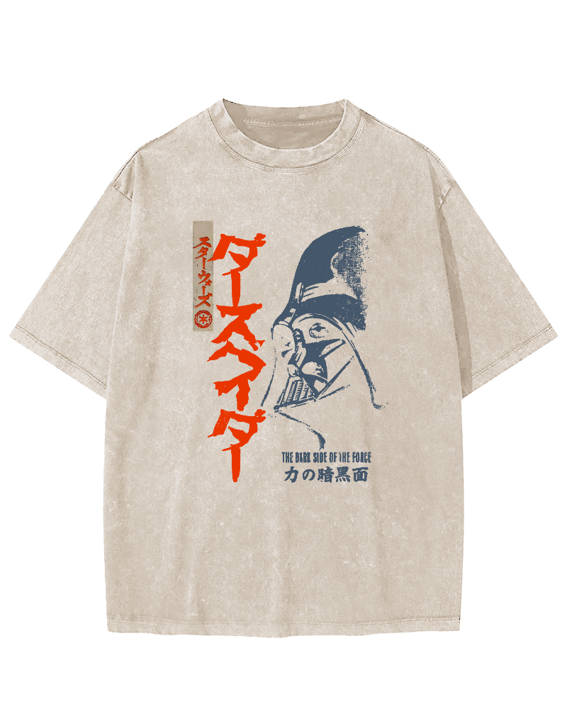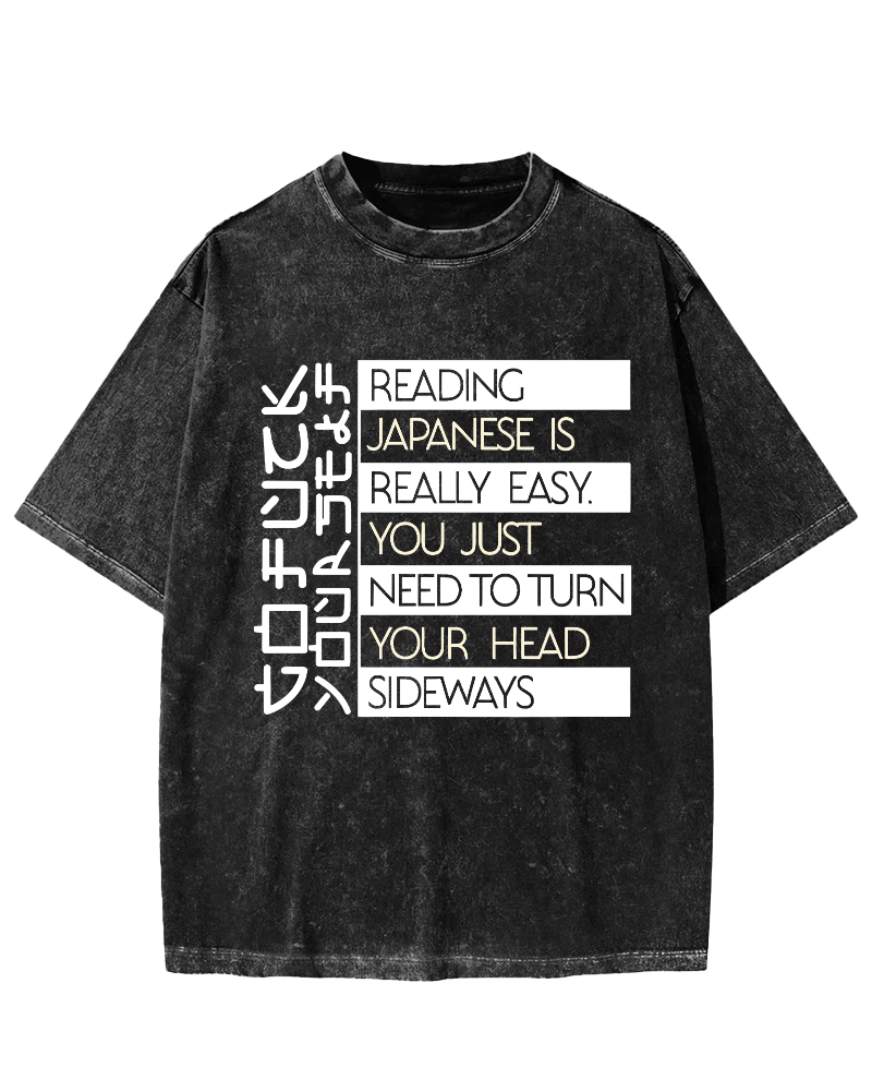 Japanese Retro Chinese Characters Vintage Washed T-shirt