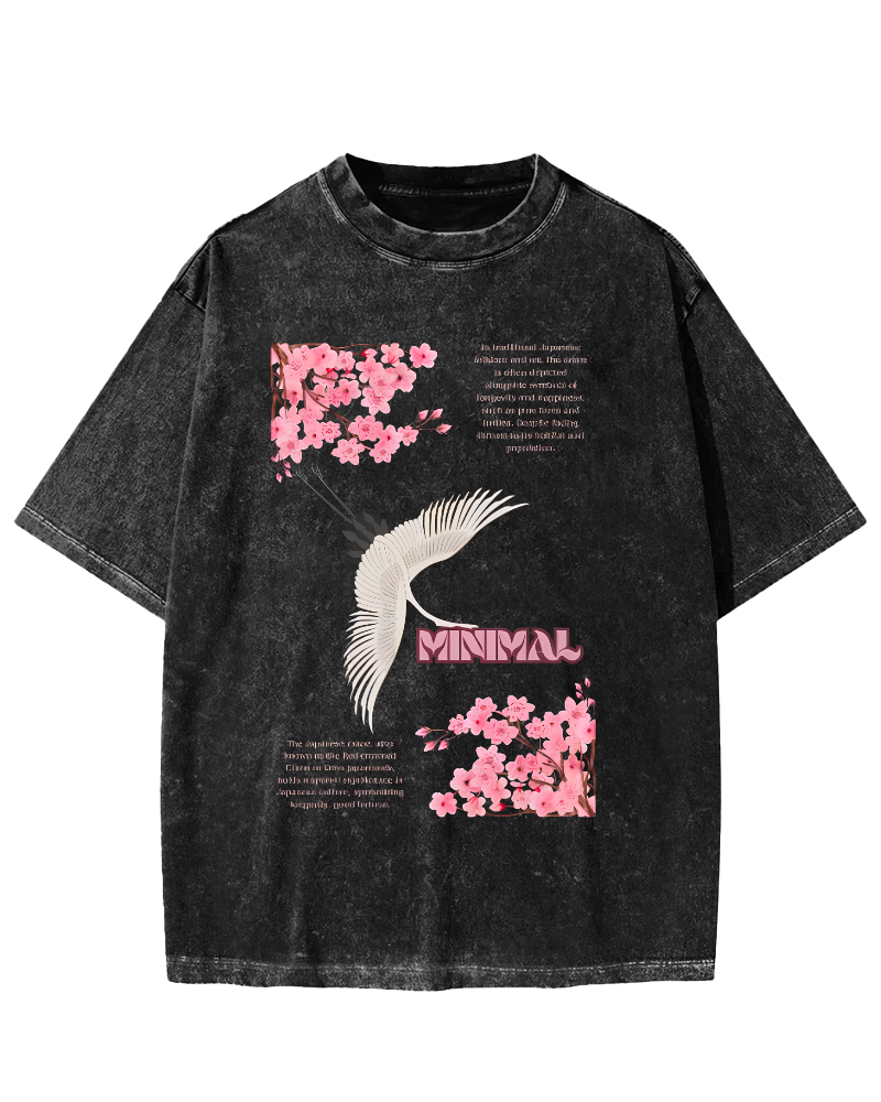 Retro Lotus Japanese Style Vintage Washed T-shirt