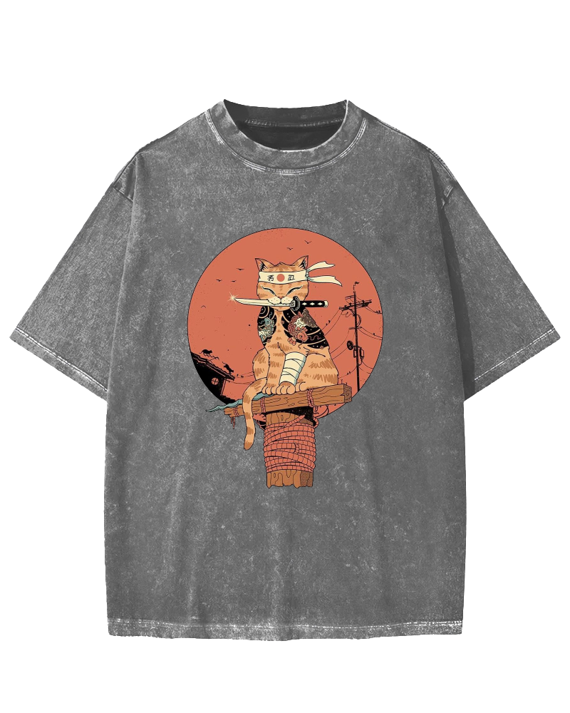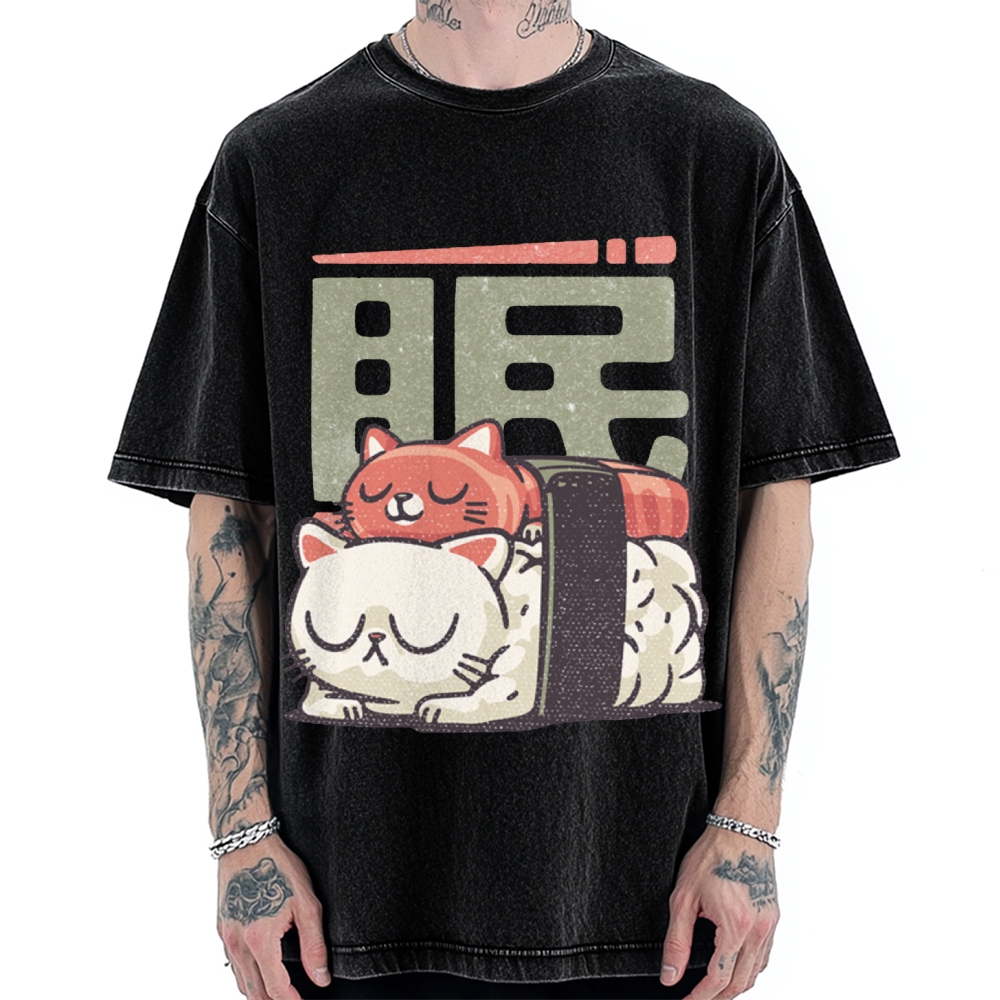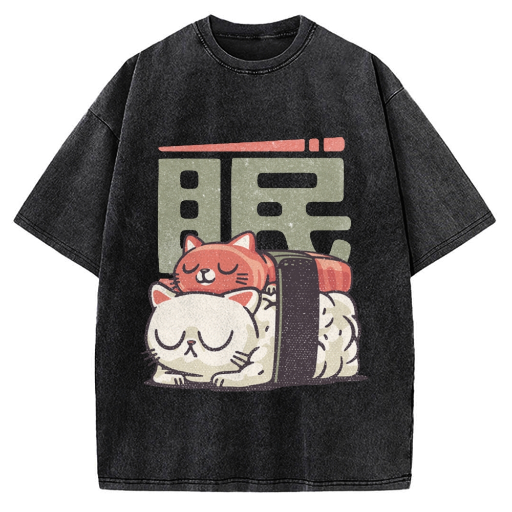 Cat Sushi Japanese Art Vintage Washed T-shirt