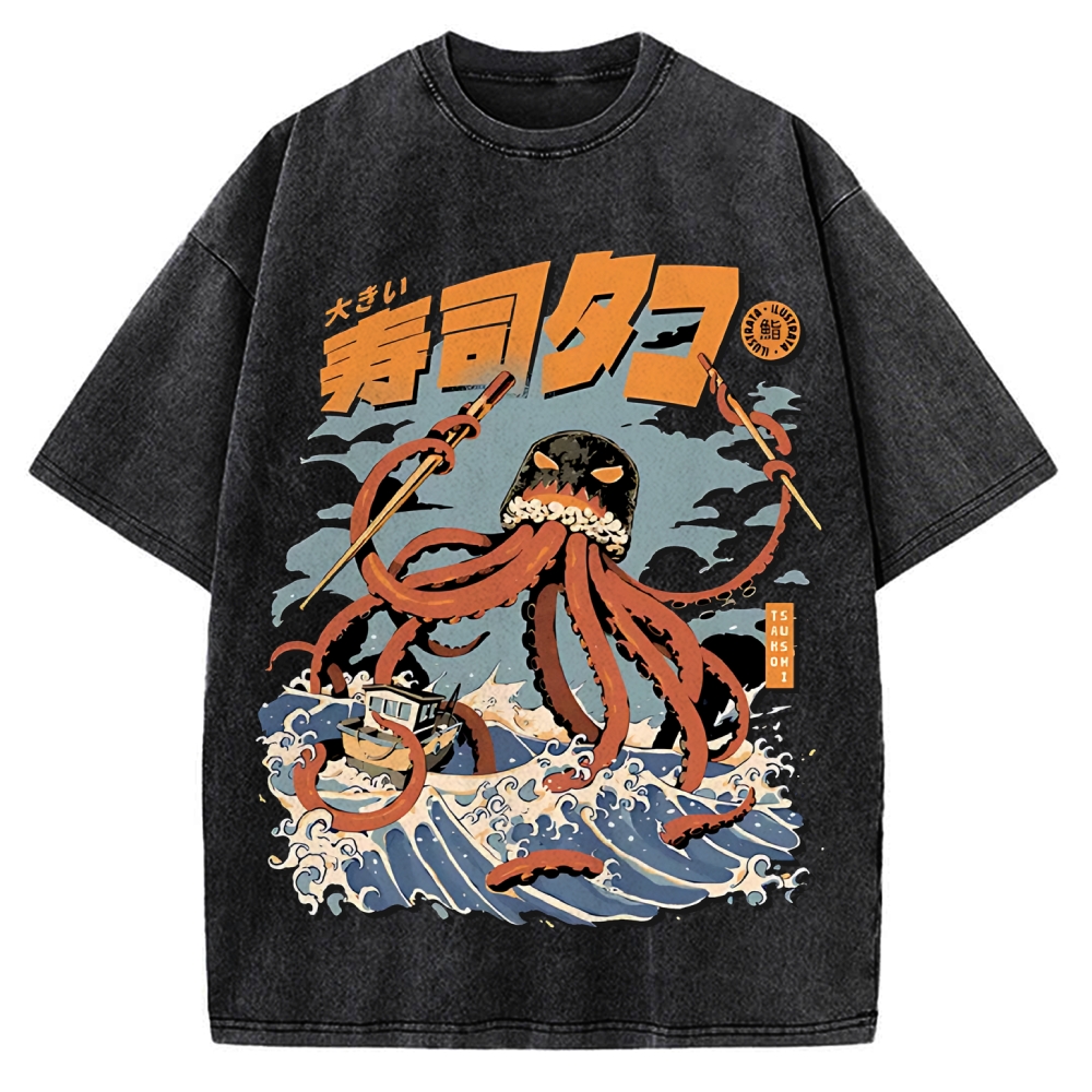 Sushi Octopus Monster Giant sea monster octopus Vintage Washed T-shirt