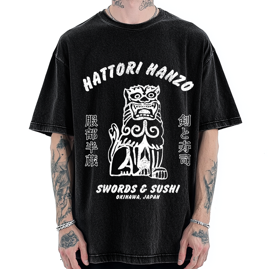 Hattori Hanzo Sword & Sushi Japanese Lion Vintage Washed T-shirt