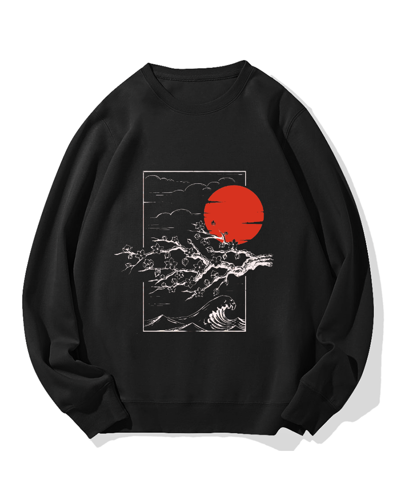 Japanese Sakura & hinomaru Cotton Sweatshirt