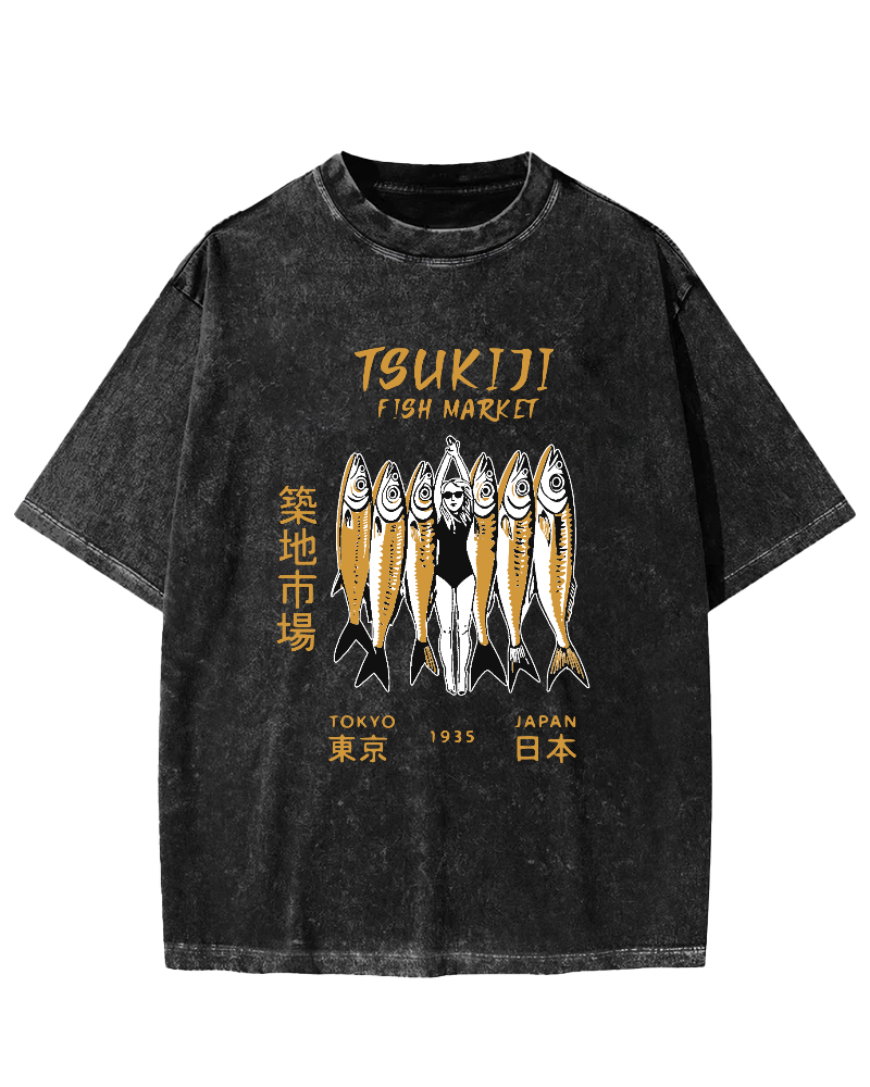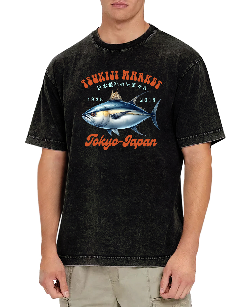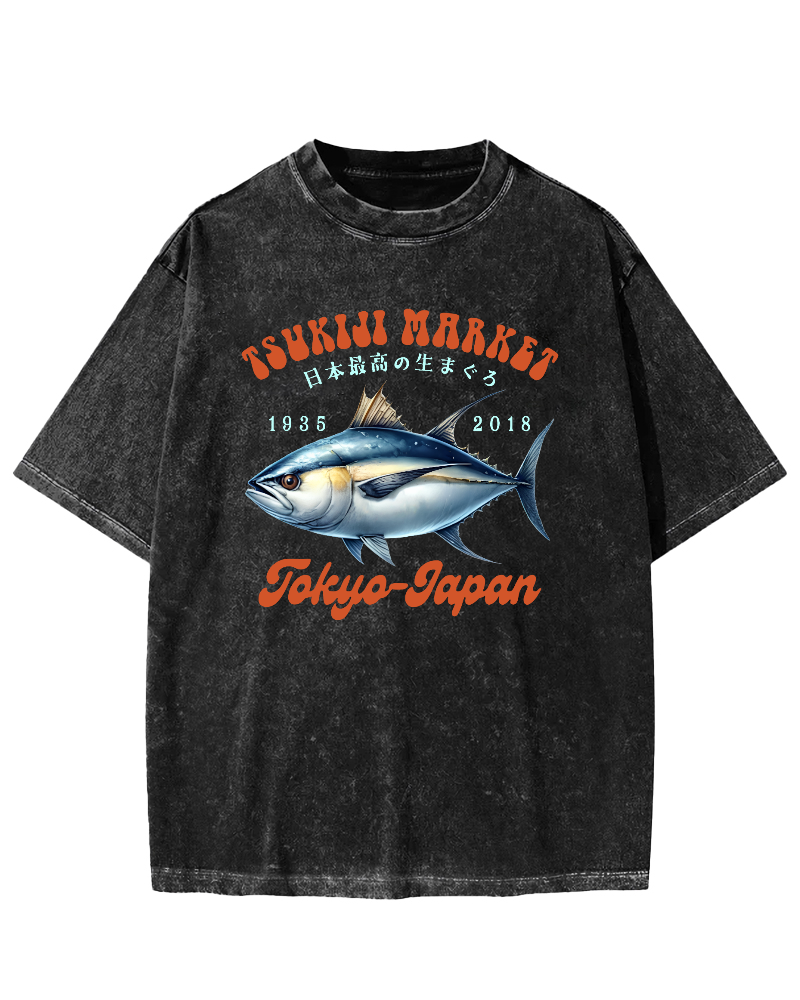 Tokyo Tsukiji Fish Market Vintage Washed T-shirt