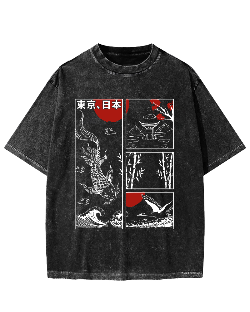 Tokyo Japanese Retro Style Vintage Washed T-shirt