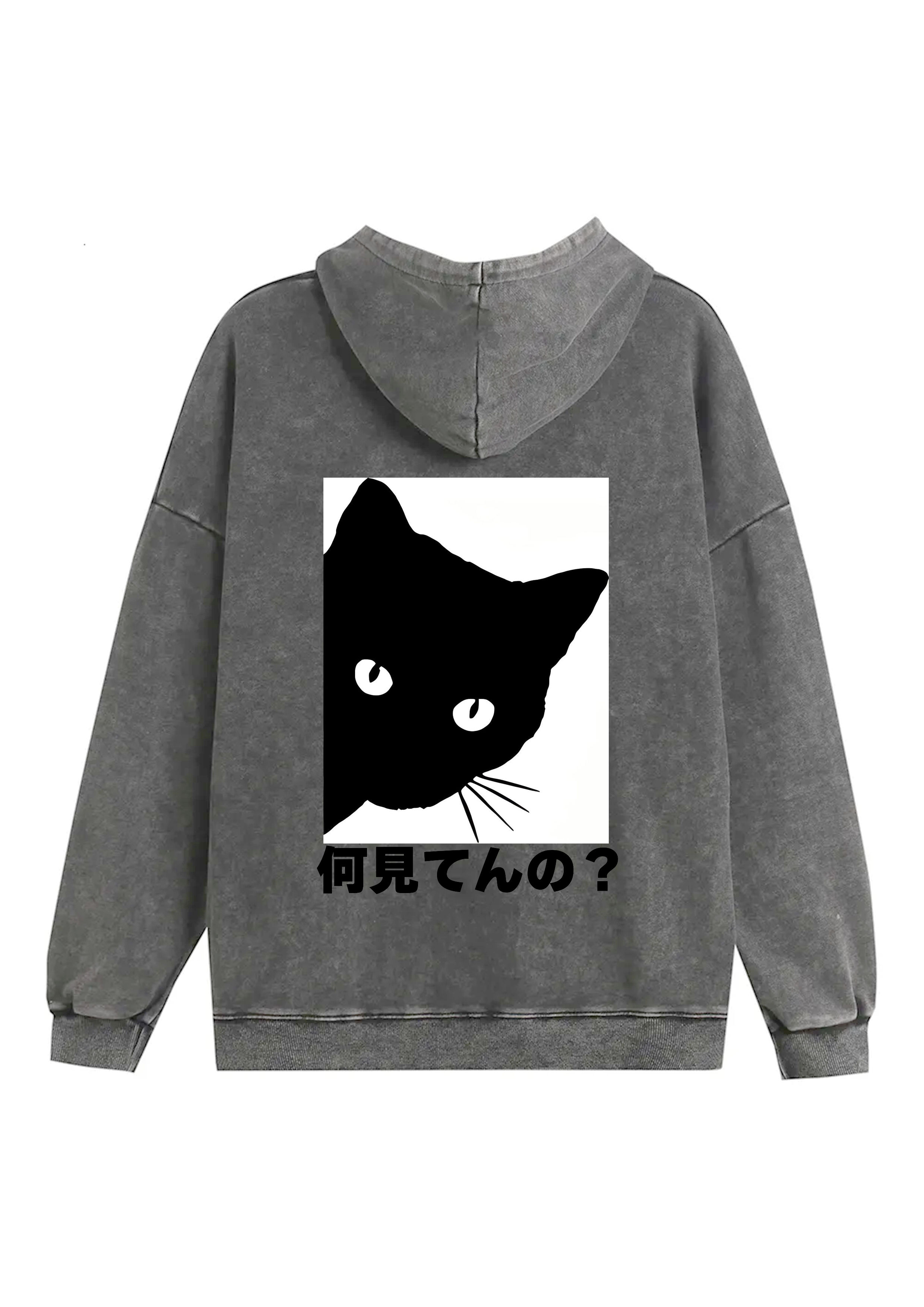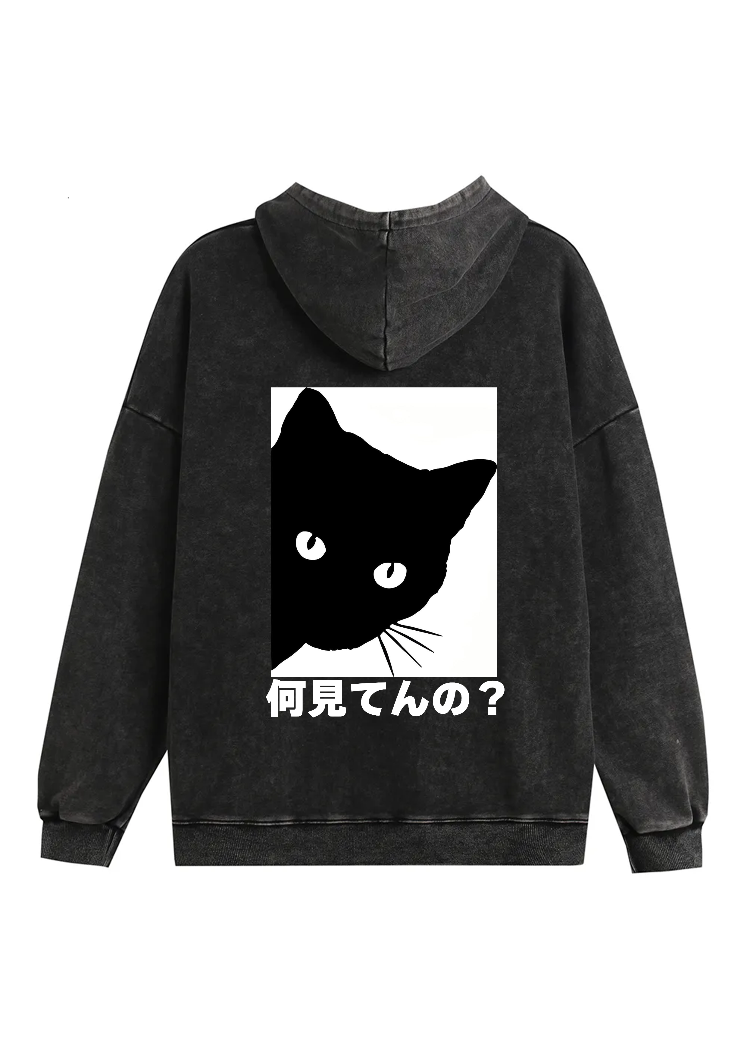 Retro Japanese Witch Cat Vintage Washed Hoodie