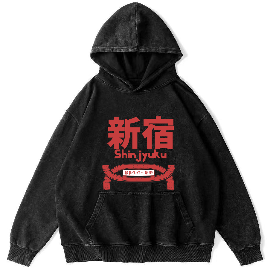 Lighting Simplicity Diagram Japanese Style Vintage Washed Hoodie