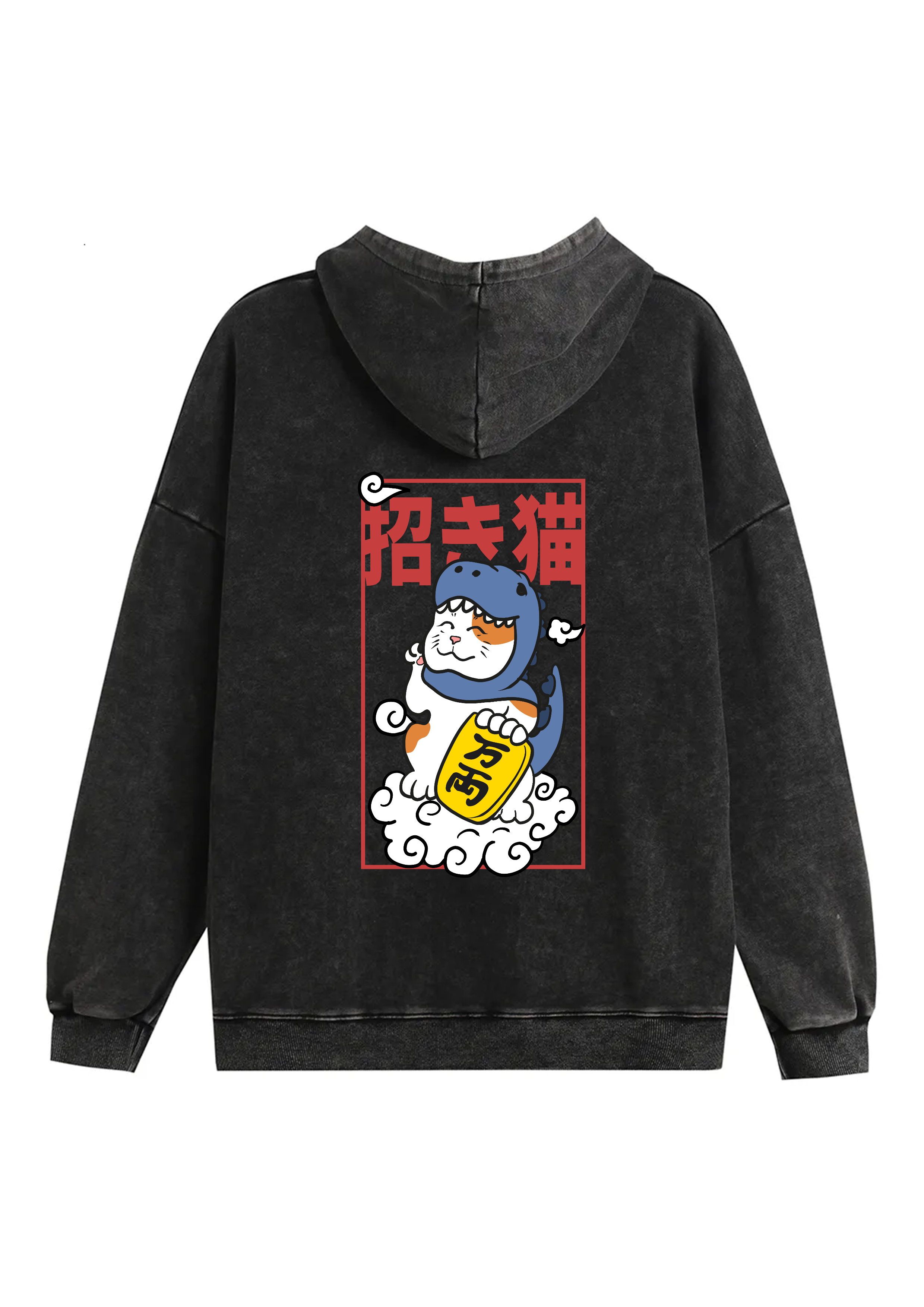 Ukiyo-e Mount Fuji Cat Vintage Washed Hoodie