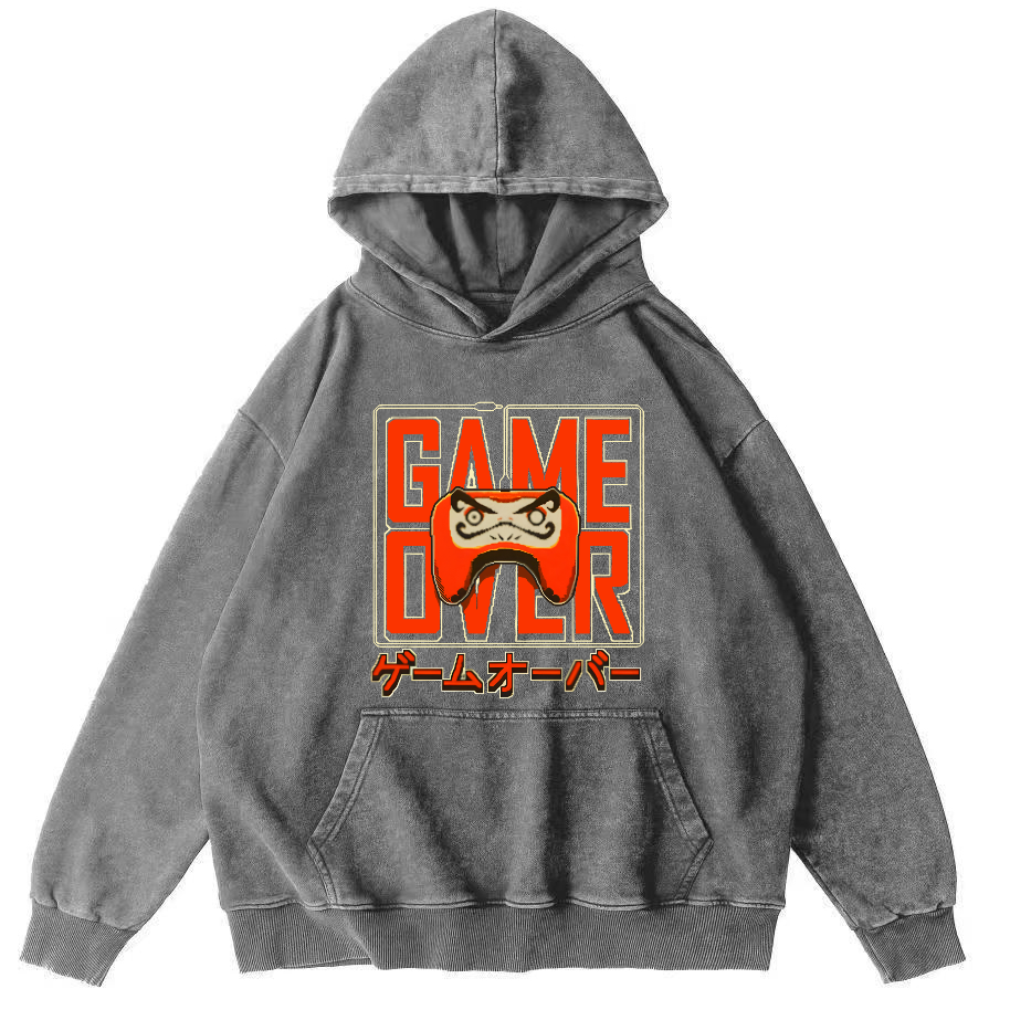 Game Ends in Japanese Style Vintage Washed Hoodie