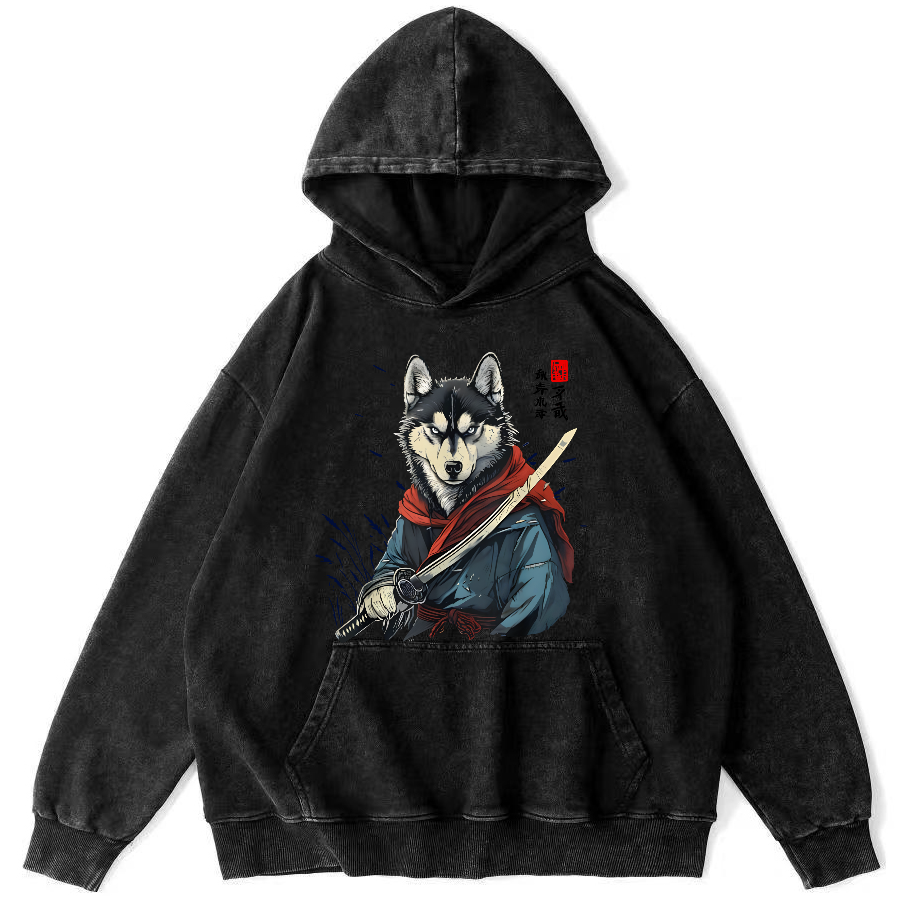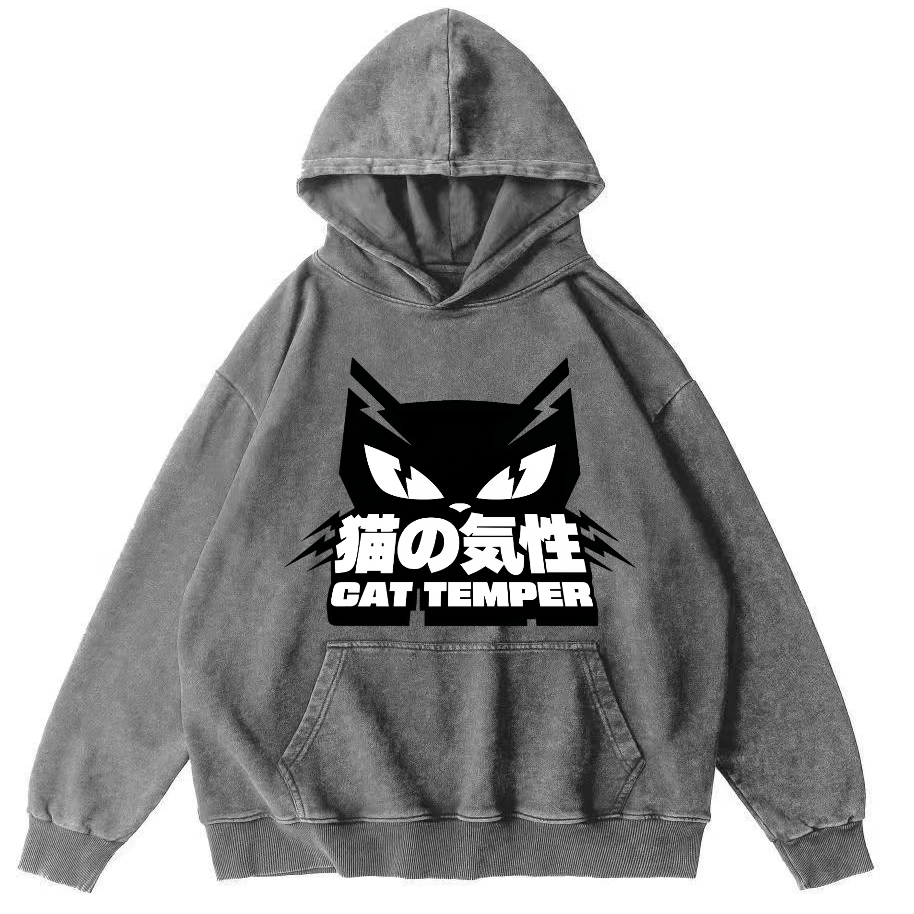 Cat Temper Japanese Style Vintage Washed Hoodie