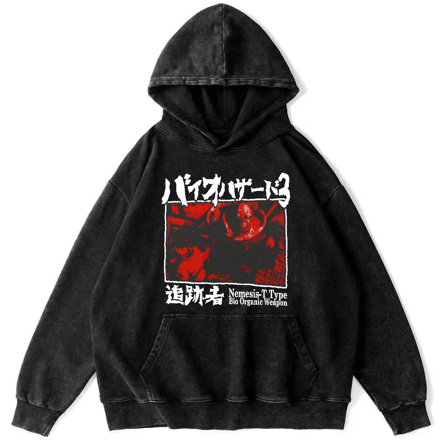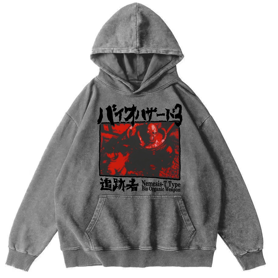 Japanese retro cartoon Vintage Washed Hoodie