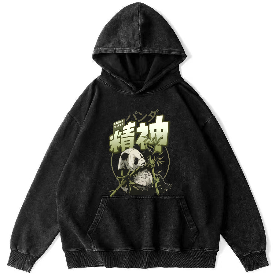 Panda Spirit That Loves Bbamboo, Japanese Style Vintage Washed Hoodie