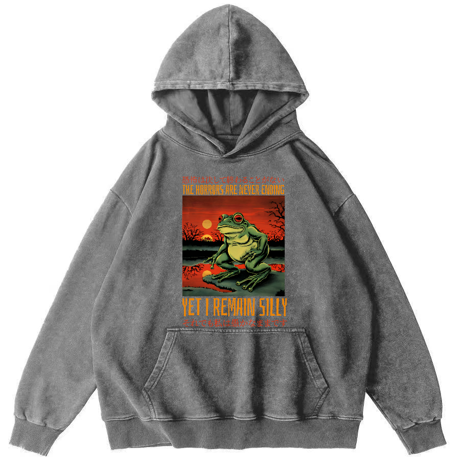Cute Frog Japanese Style Vintage Washed Hoodie
