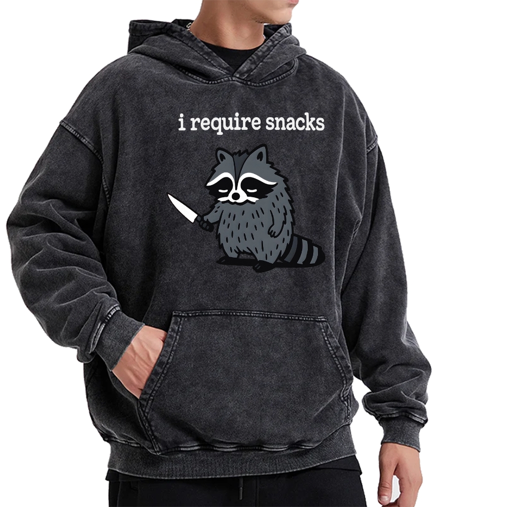 i require snacks Funny Raccoon Vintage Washed Hoodie