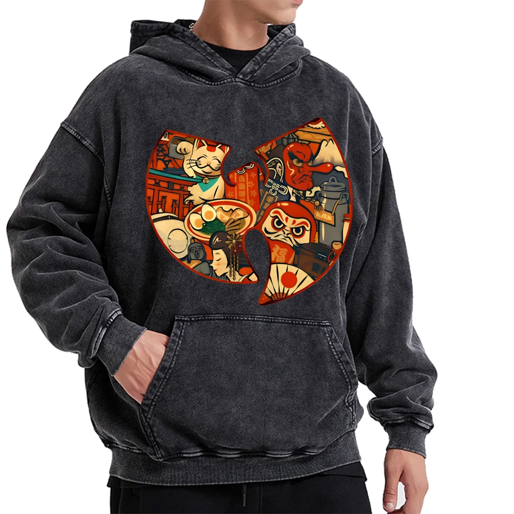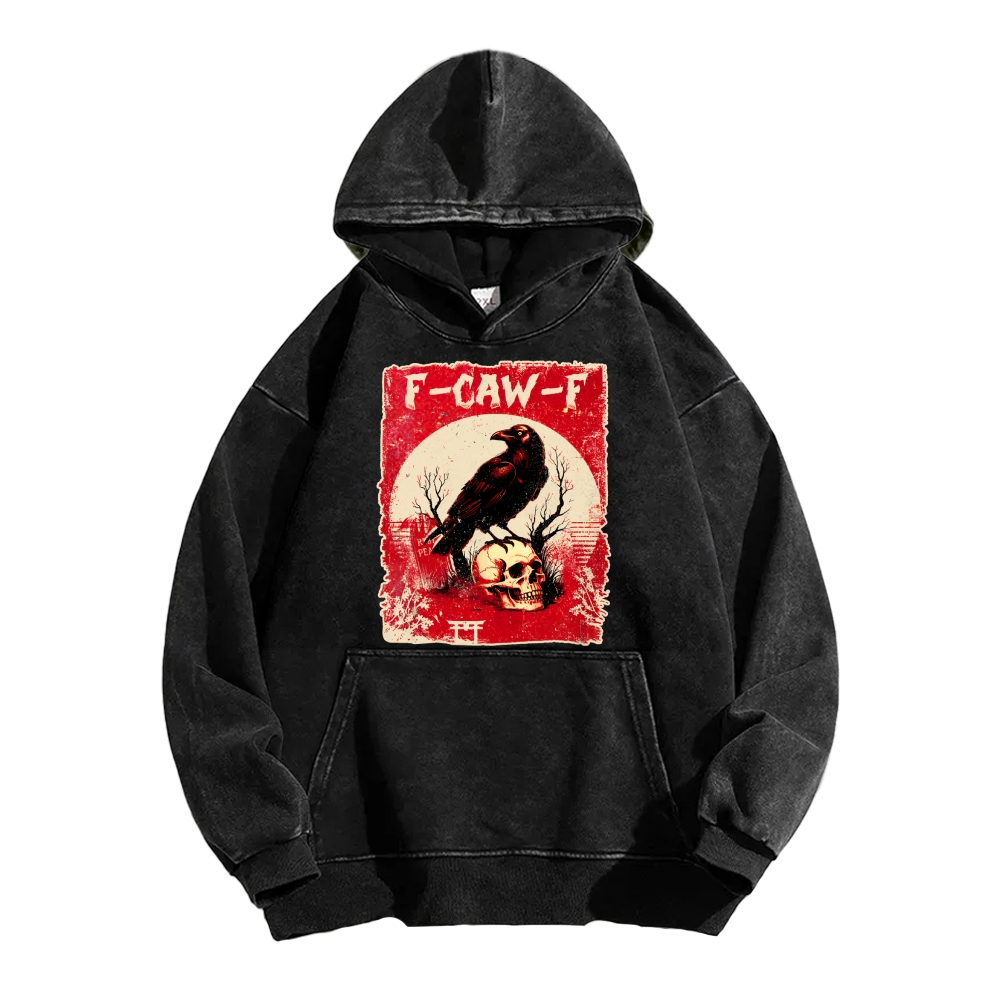 F-CAW-F Black Crow Japanese style Vintage Washed Hoodie
