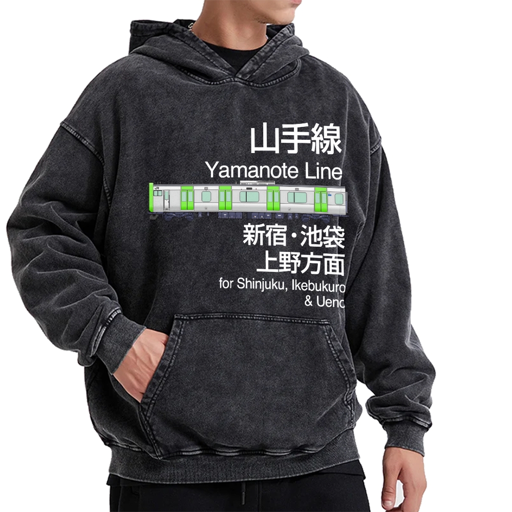 Yamanote Line Japan Train Densha Vintage Washed Hoodie