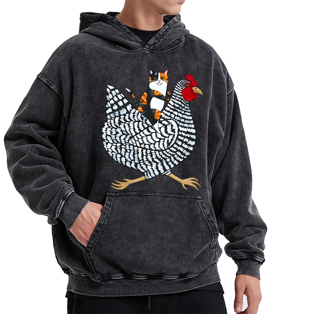 Knight Cat Riding Chicken Vintage Washed Hoodie