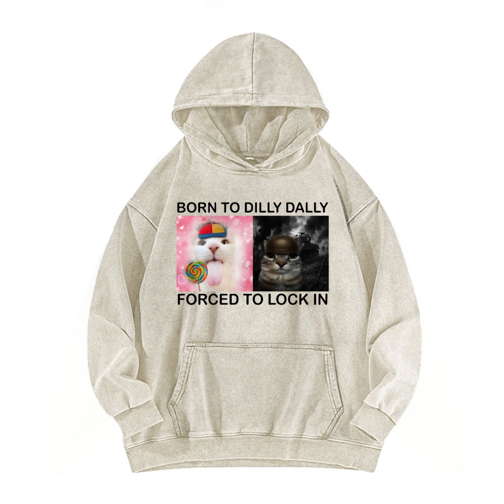 Born To DIlly Dally Forced To Lock In Meme Cats Vintage Washed Hoodie