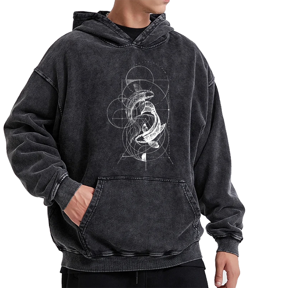 Geometric calculations Japanese carp Vintage Washed Hoodie