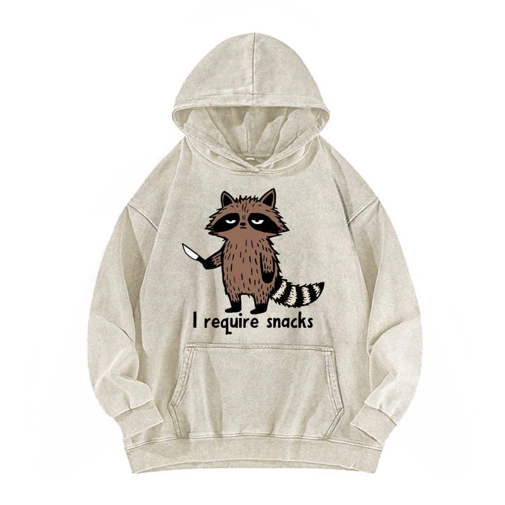 i require snacks Funny Raccoon Vintage Washed Hoodie