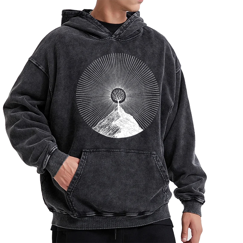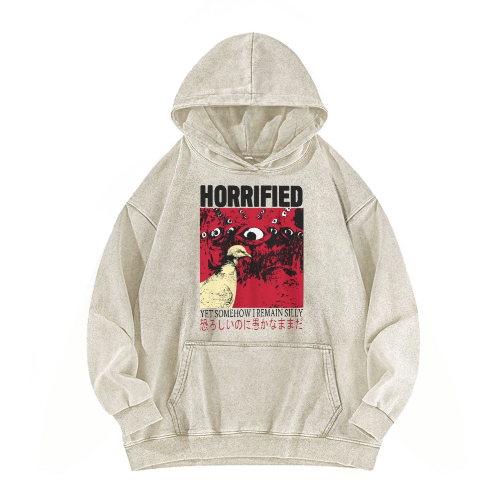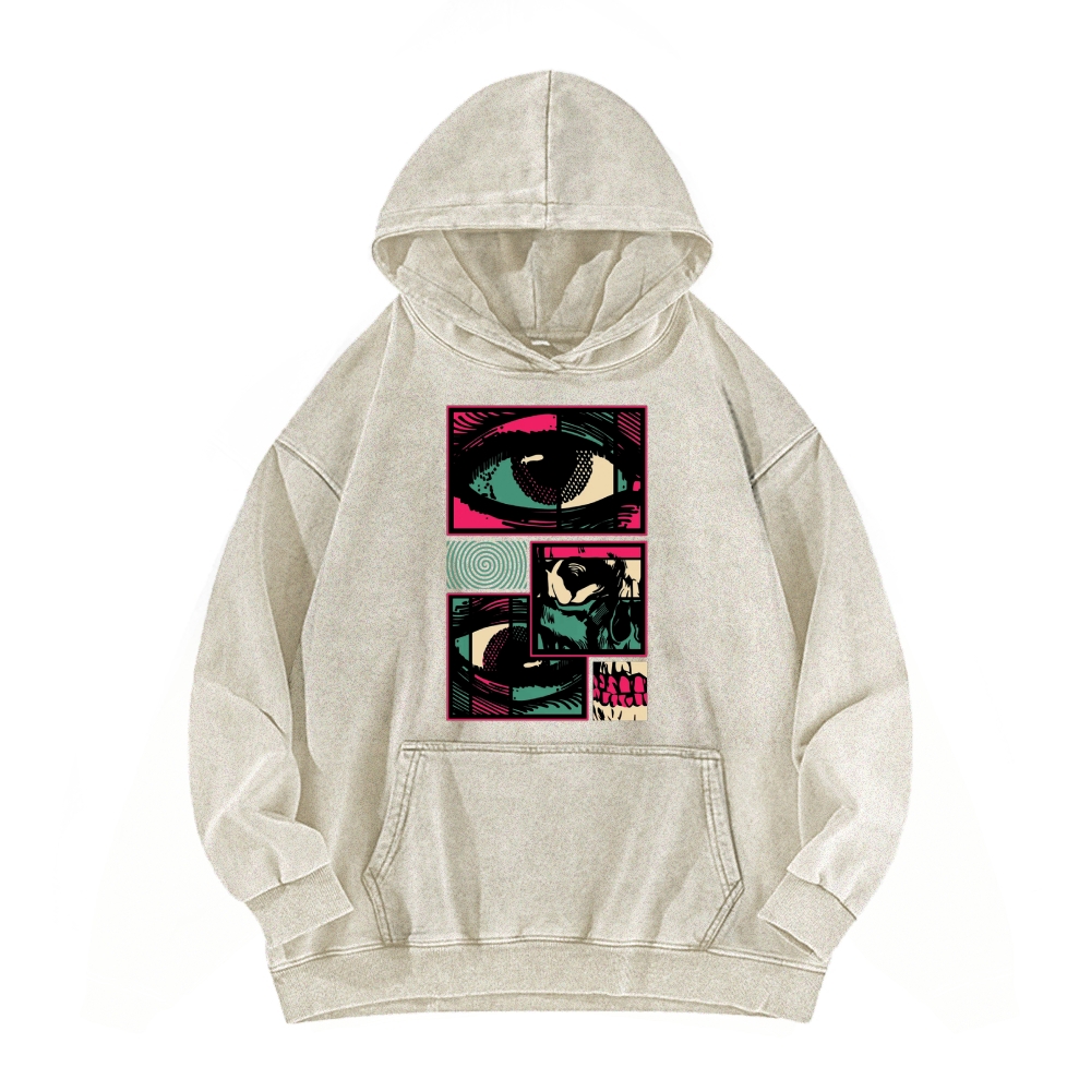 Retro Vibes Front And Back Printing Vintage Washed Hoodie