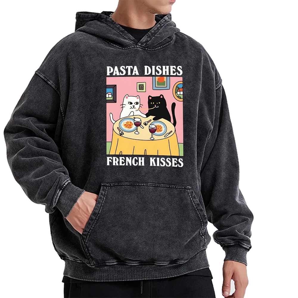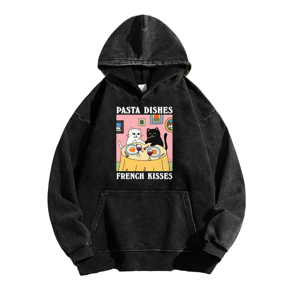 Pasta Dishes French Kisses Cat Vintage Washed Hoodie