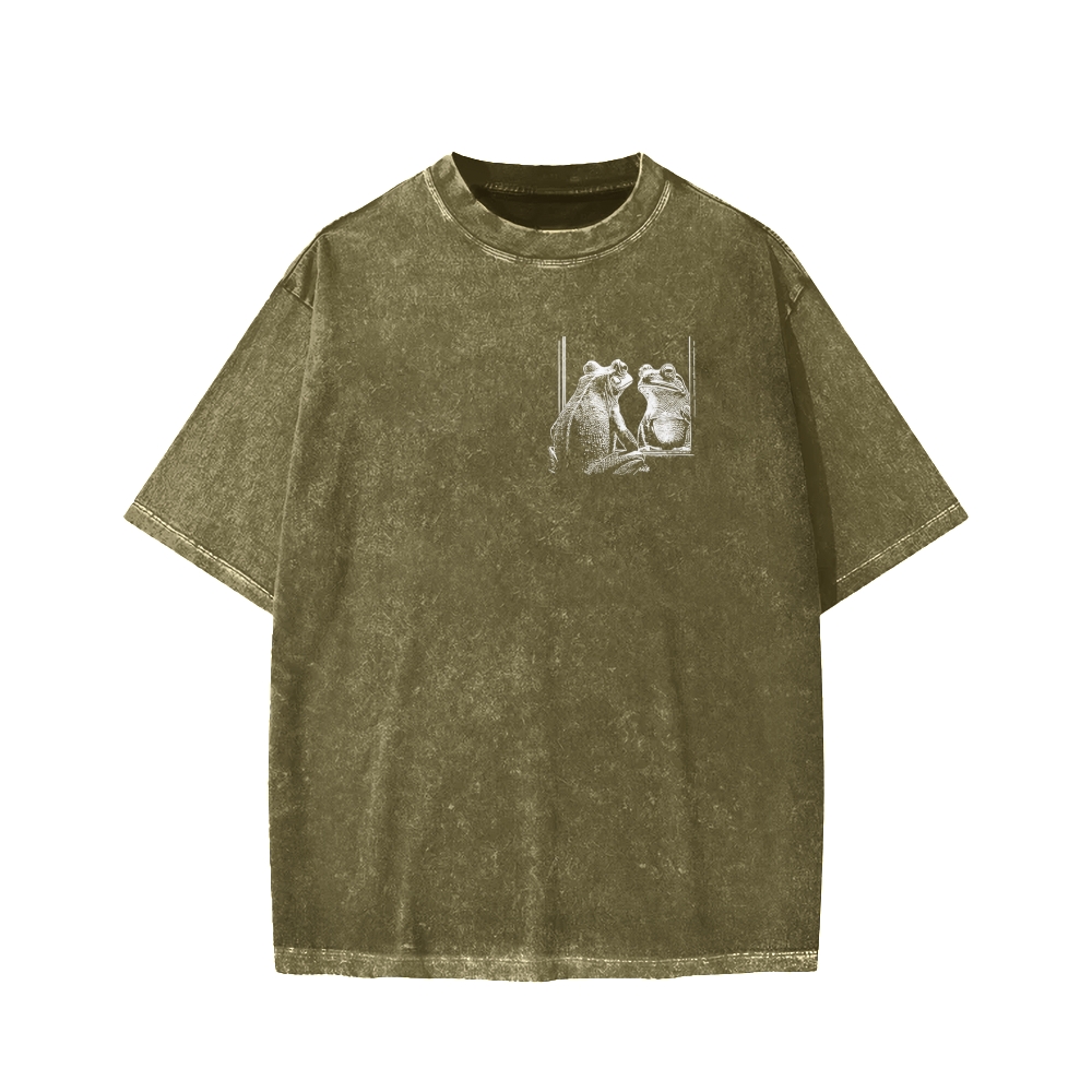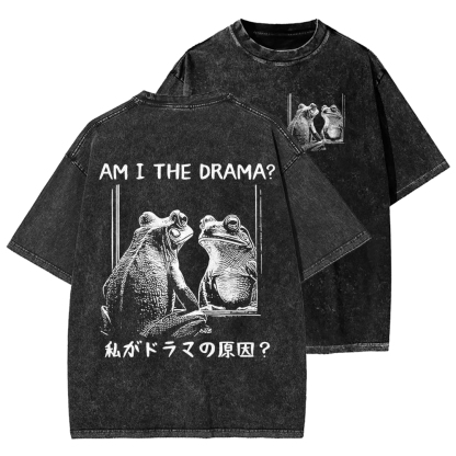 Am I The Drama Japanese Funny Frog Front And Back Printing Washed T-shirt