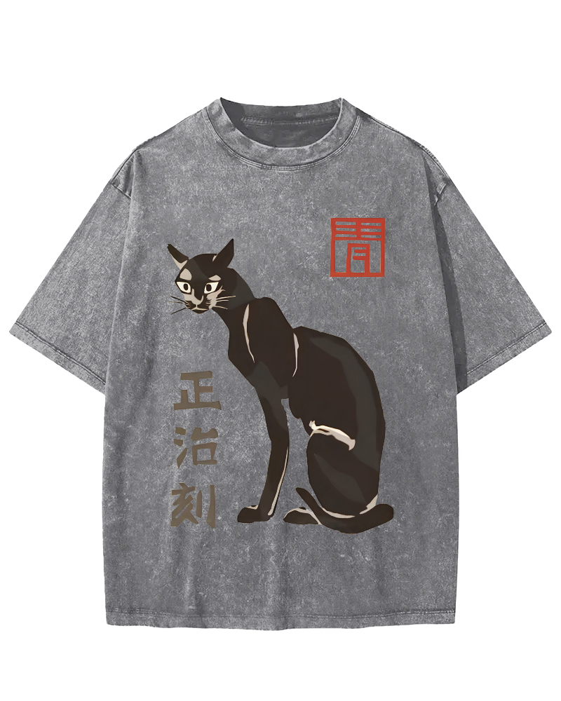 Antique Japanese Black Cat Vintage Washed T-shirt