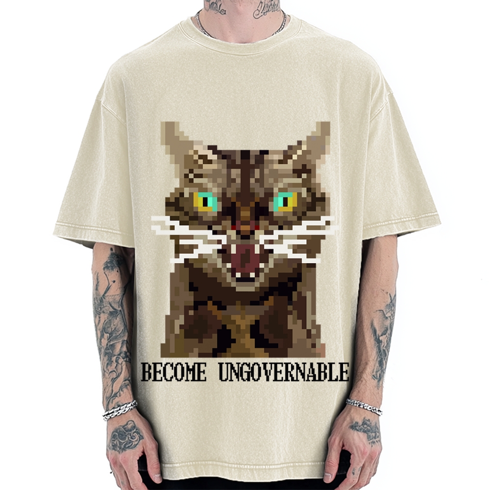 Become Ungovernable Angry Cat Vintage Washed T-shirt