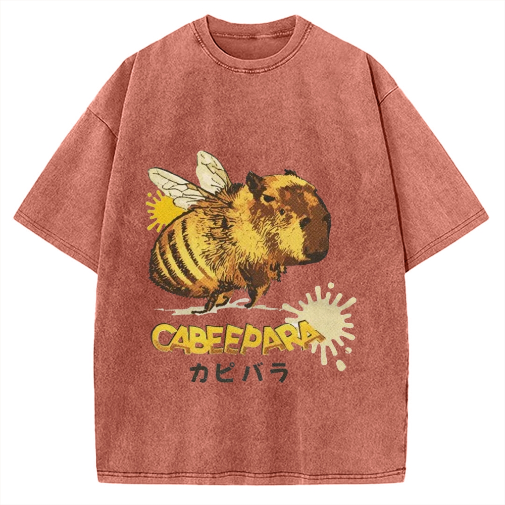 Cabeepara Funny Bee Capybara Vintage Washed T-shirt