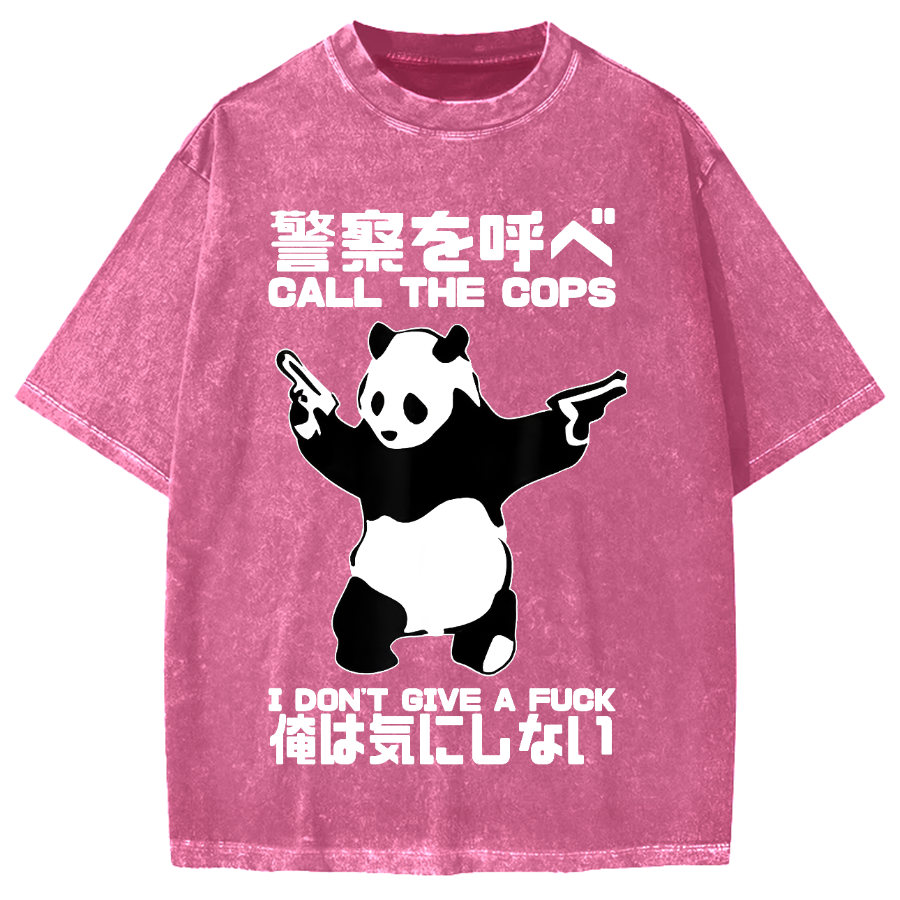 Call the police I don't give a fxxk Panda Vintage Washed T-shirt