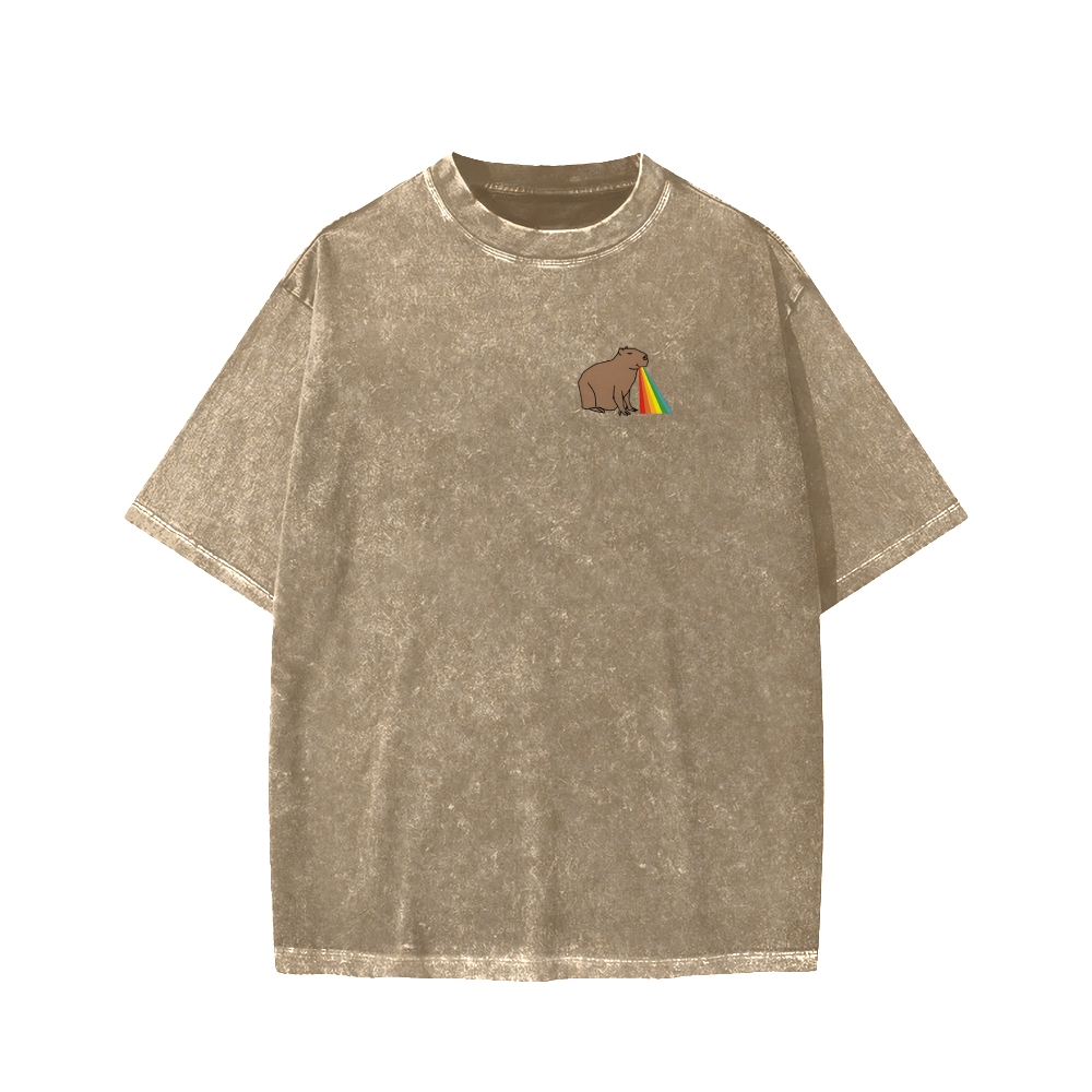 Capybara Rainbow Front And Back Printing Washed T-shirt