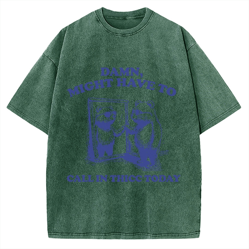 Damn Might have to call in thicc today Funny Bear Vintage Washed T-shirt