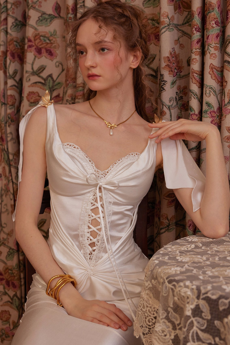 Delphina Satin Ruched Lace Up Midi Dress