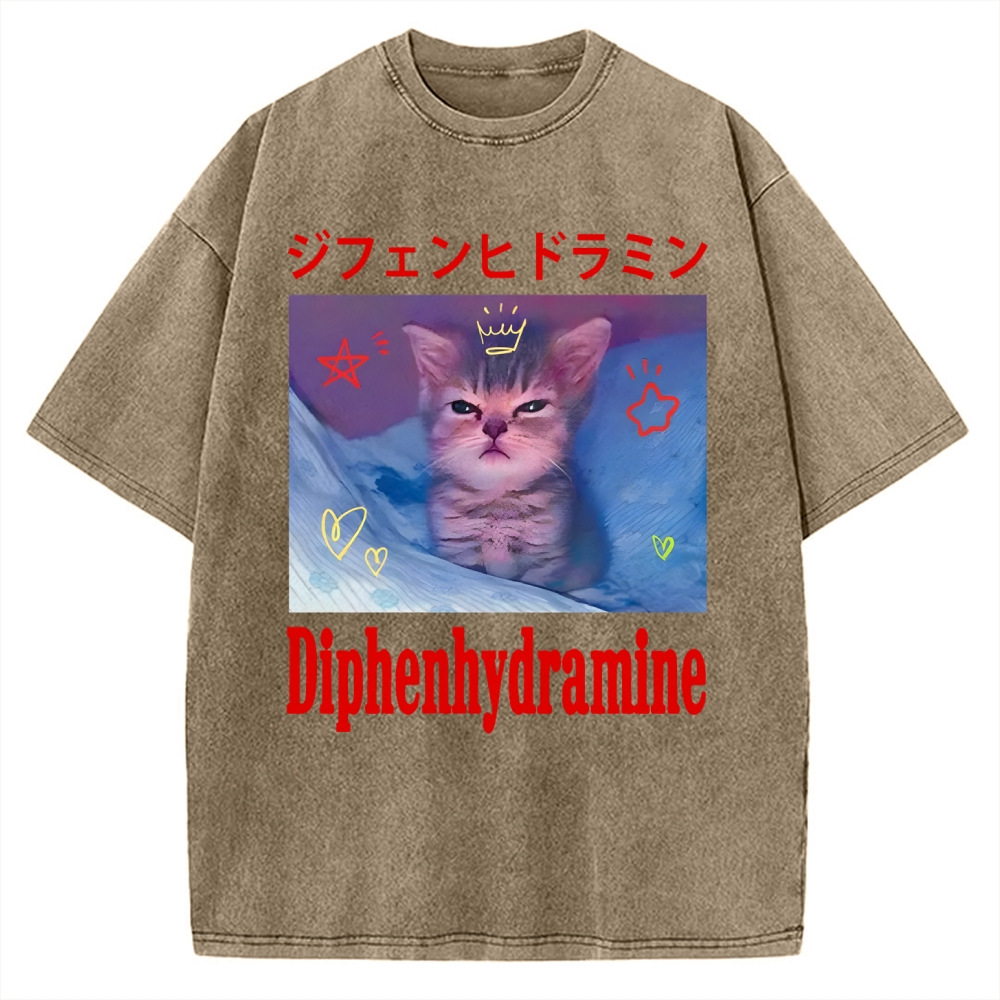 Diphenhydramine Cat Funny Meme Vintage Washed T-shirt