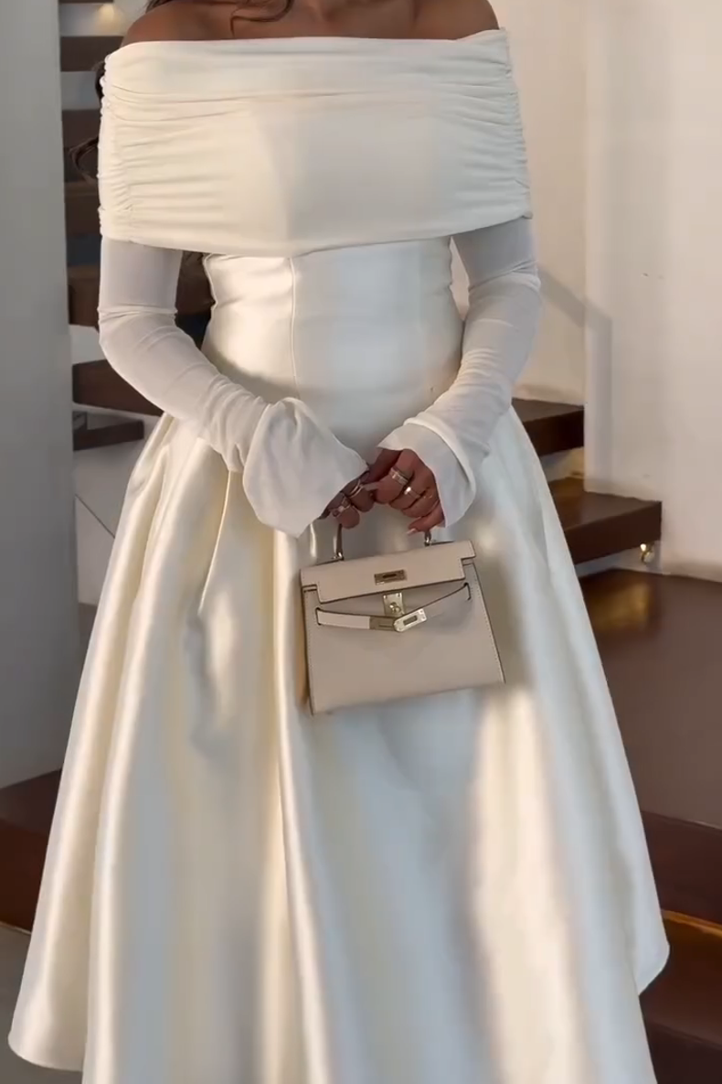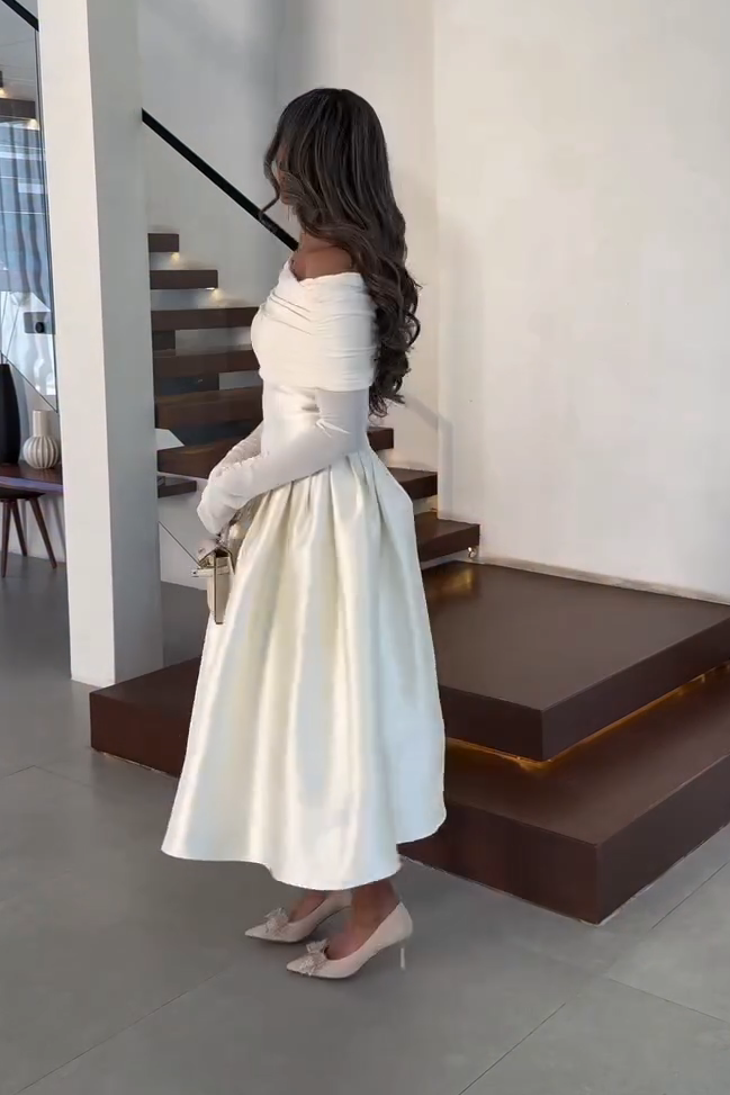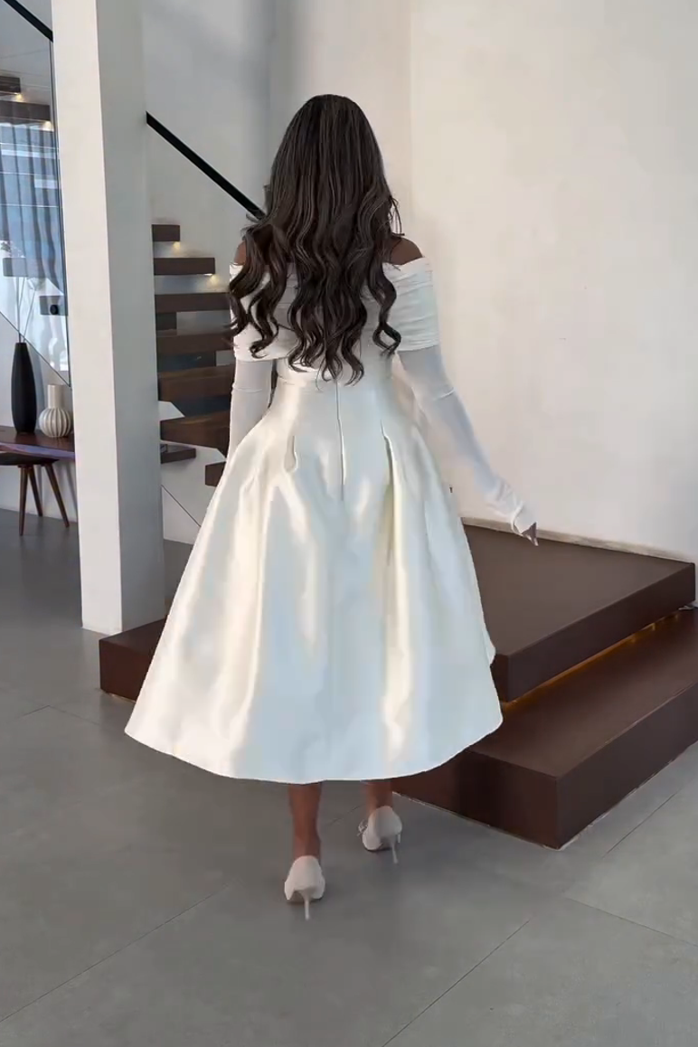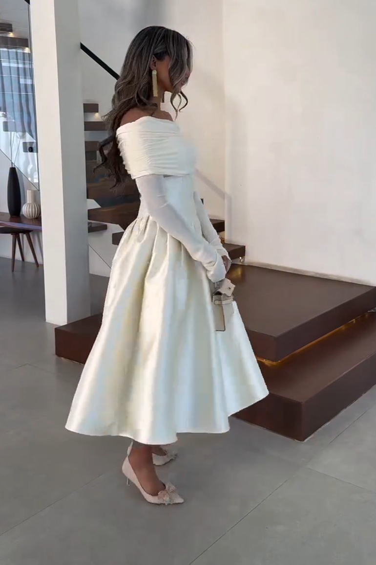 Ethereal Off Shoulder Sheer Sleeves Midi Dress