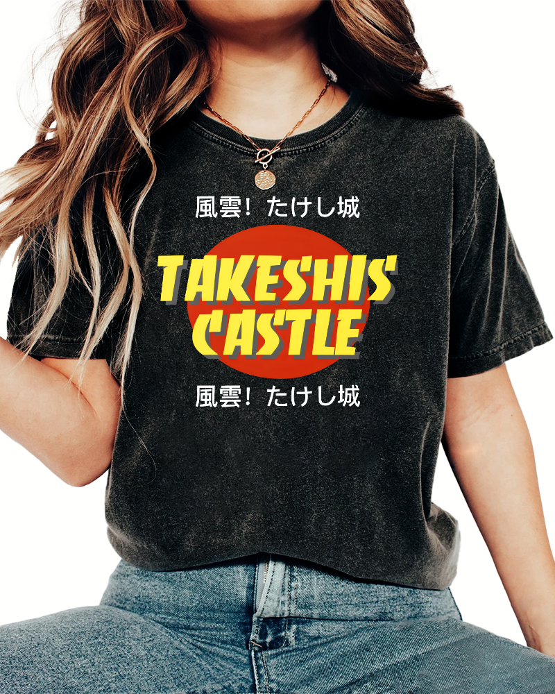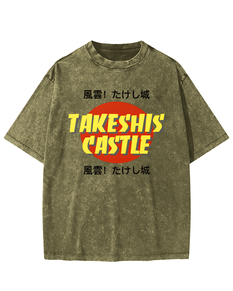 Fengyun Japanese style retro Chinese characters Vintage Washed T-shirt