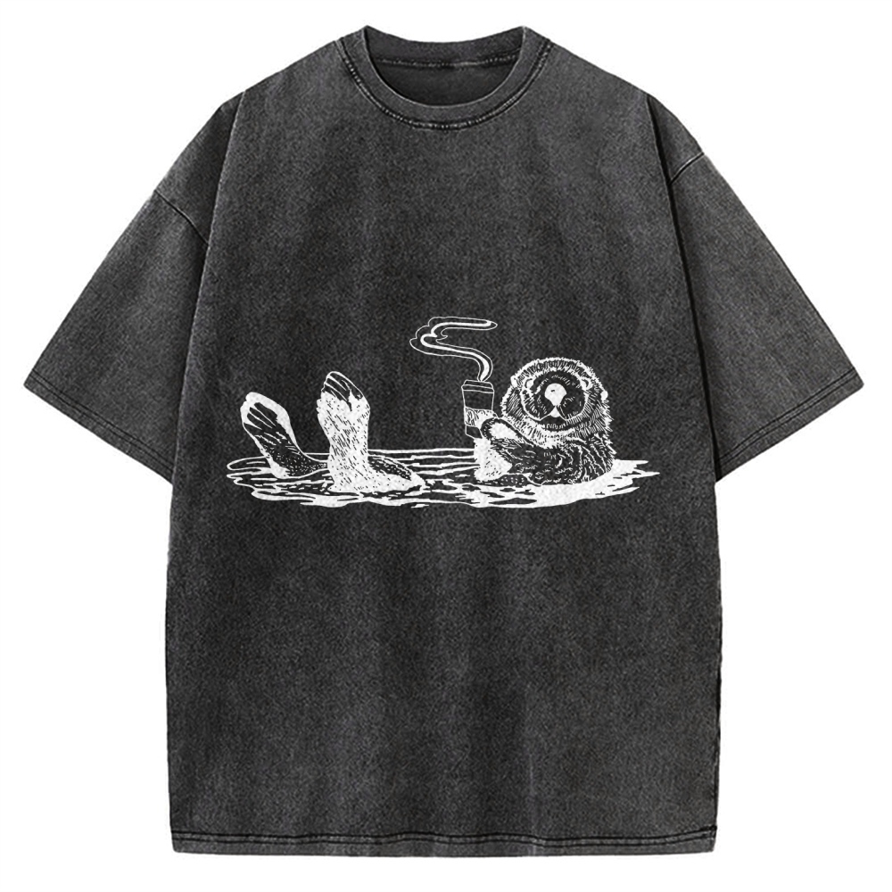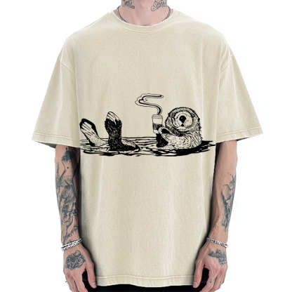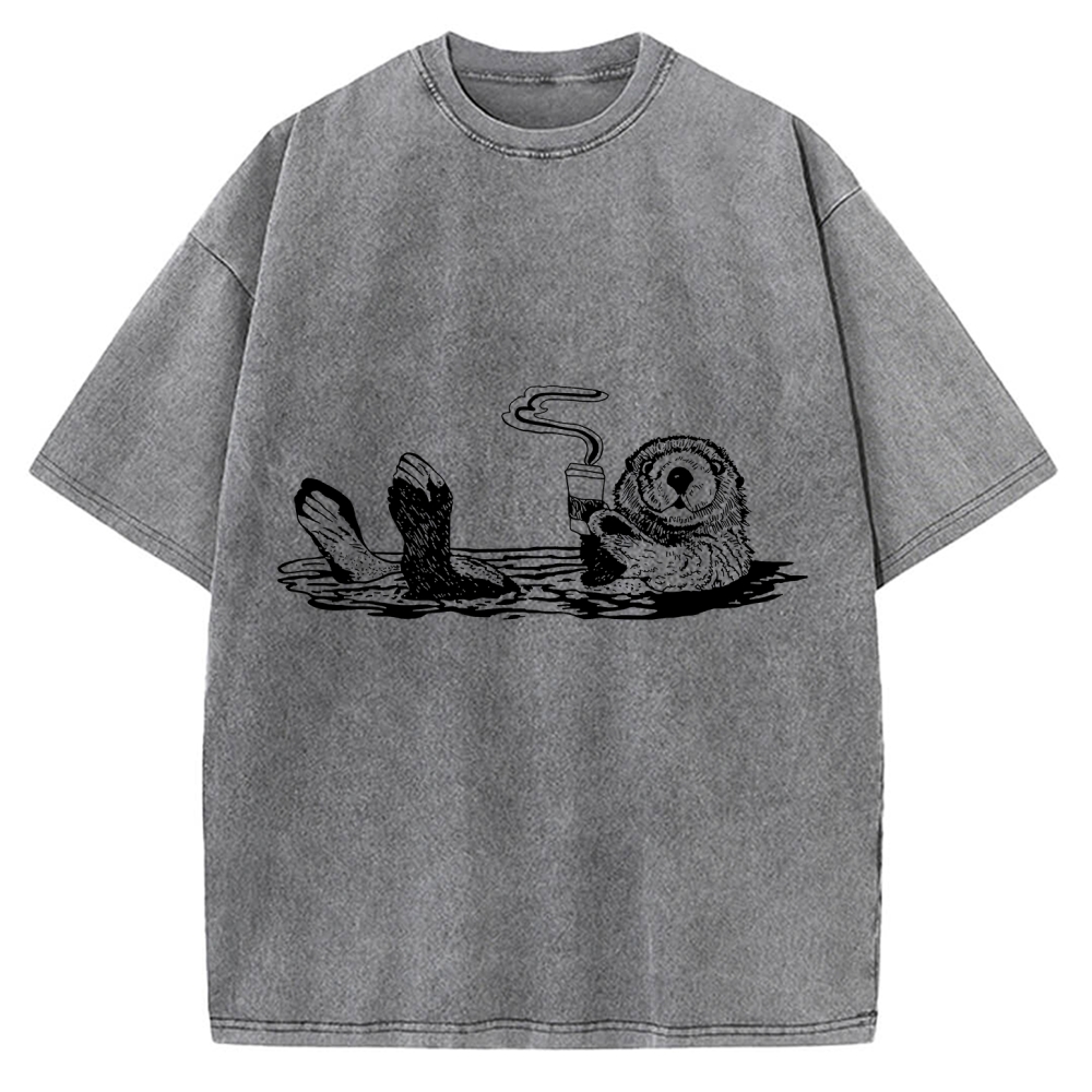 Funny Coffee Otter Vintage Washed T-shirt