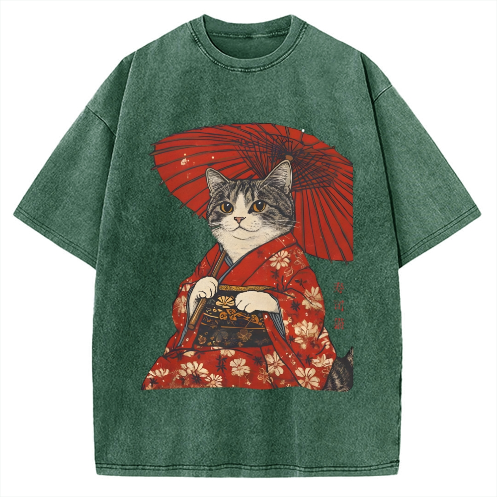 Geisha Cat Kimono Vintage Washed T-shirt