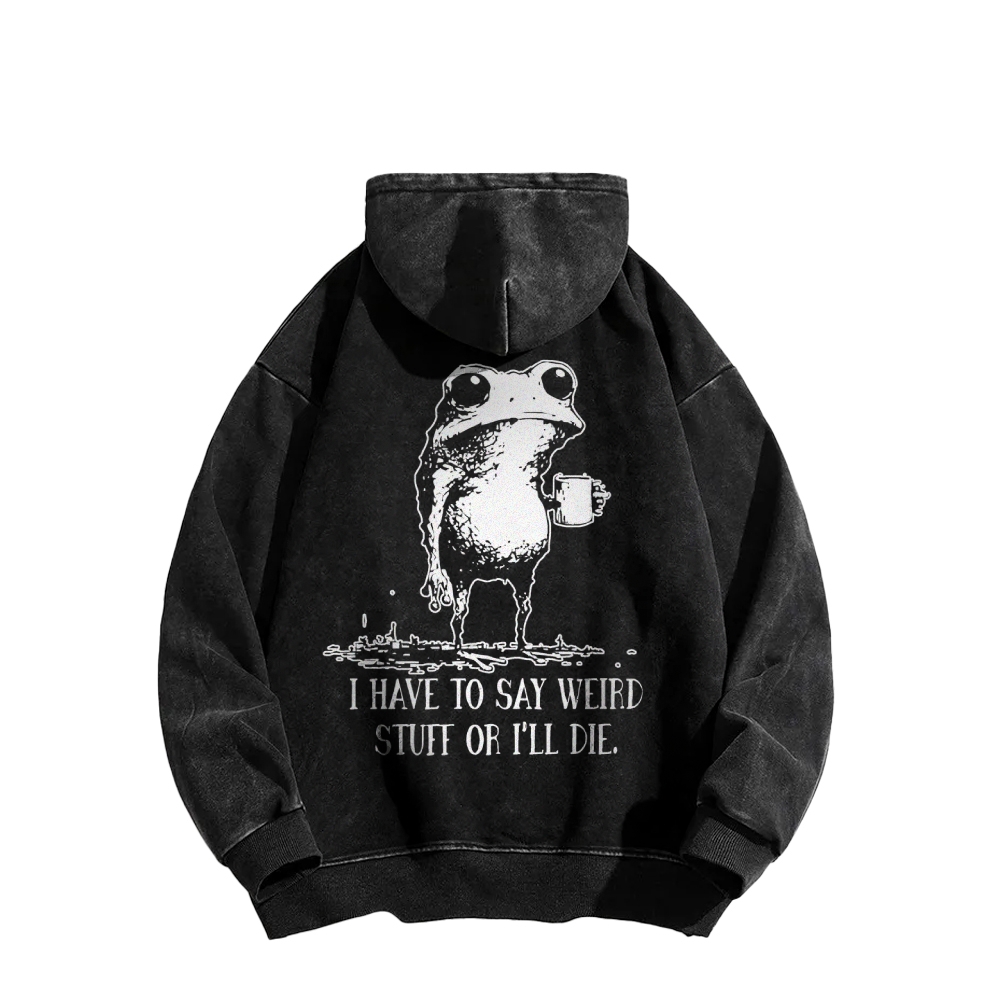 I Have To Say Weird Stuff Or I'll Die Front And Back Printing Vintage Washed Hoodie