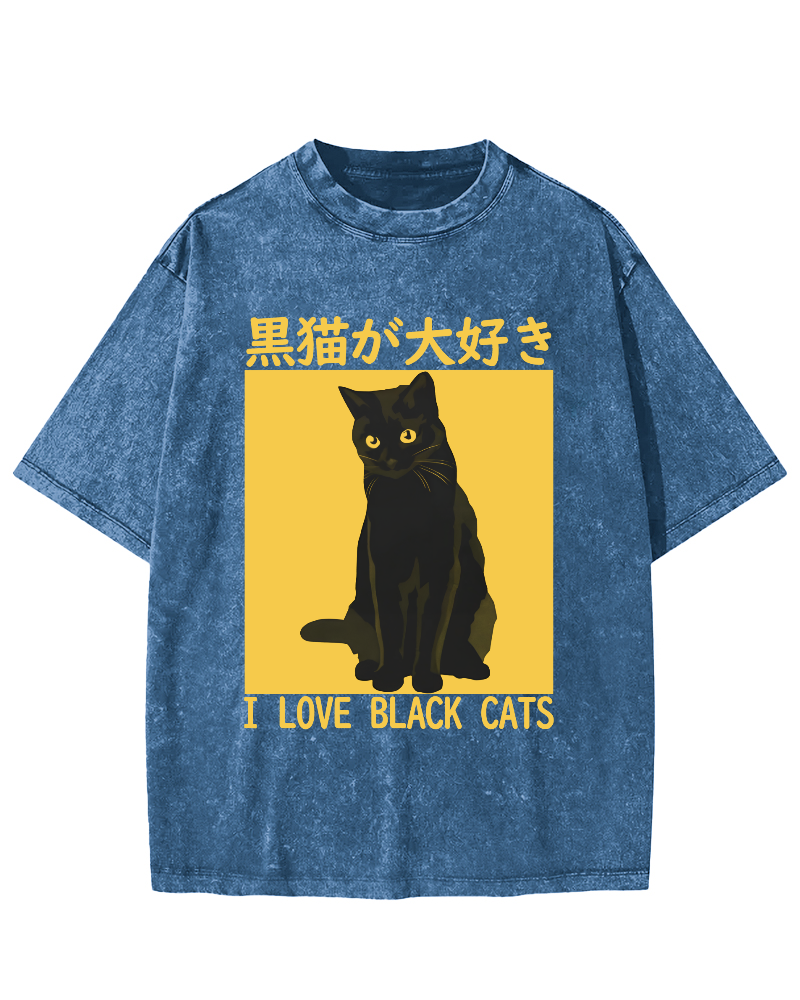 I like Japanese Style Black Cats Vintage Washed T-shirt