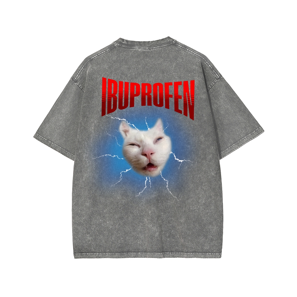 IBUPROFEN Funny Cat Meme Front And Back Printing Washed T-shirt
