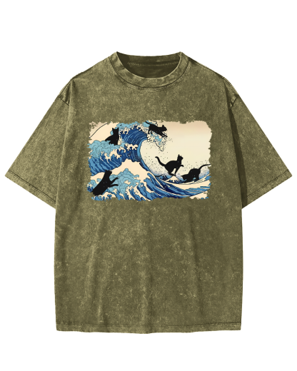 Japanese Cats Who Enjoy Playing Vintage Washed T-shirt