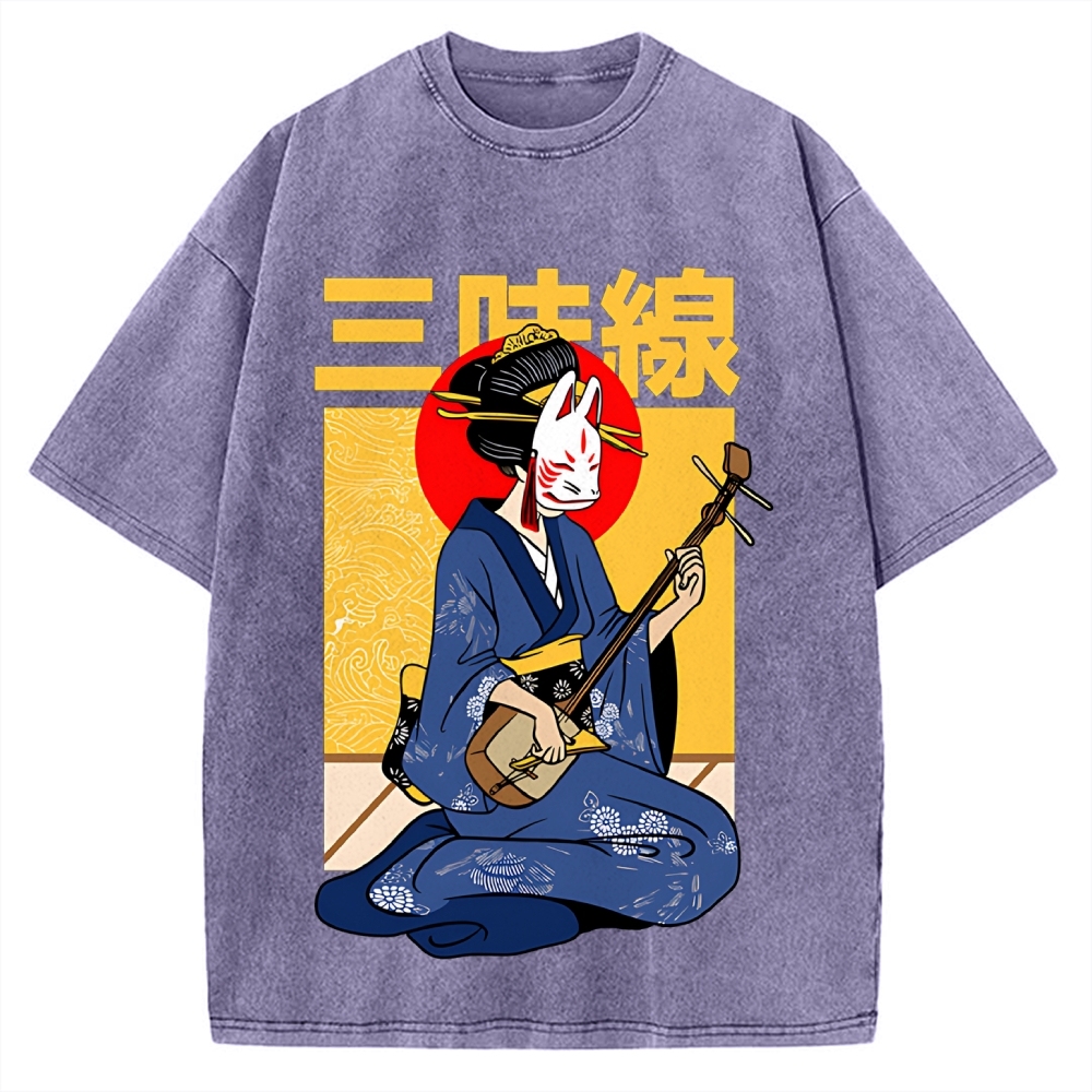 Japanese guitar Shamisen Geisha Vintage Washed T-shirt