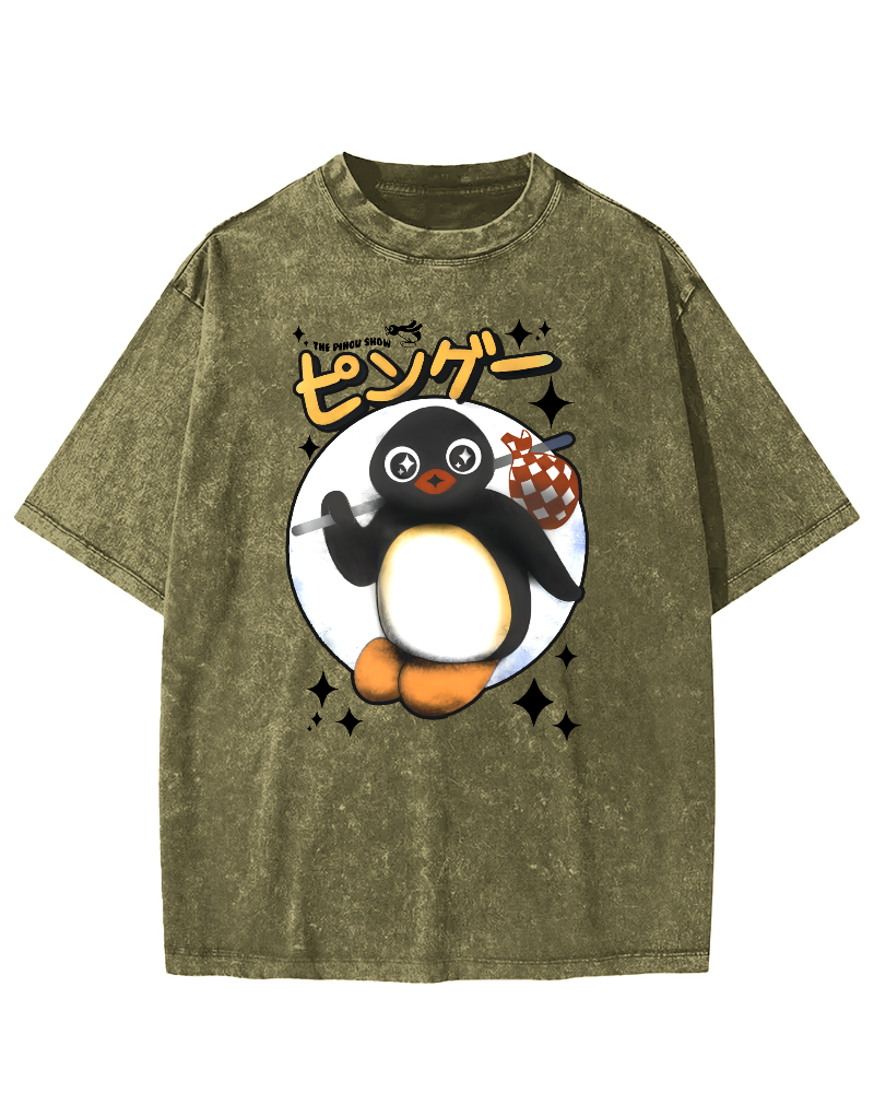 Japanese retro cartoon Vintage Washed T-shirt