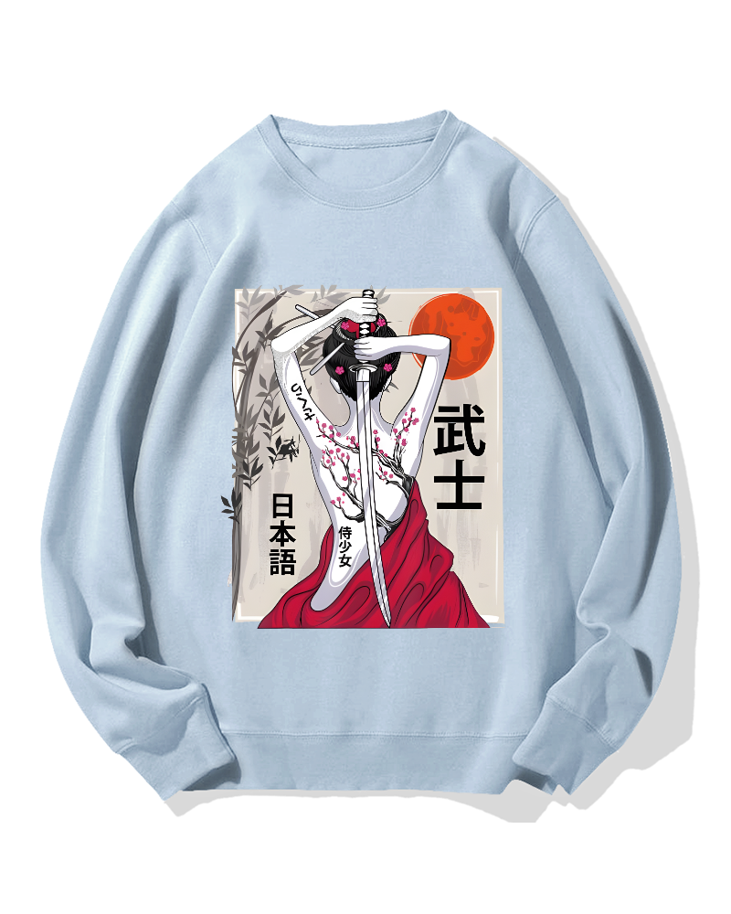 Japanese Samurai Girl Scenery Vintage Sakura Cotton Sweatshirt