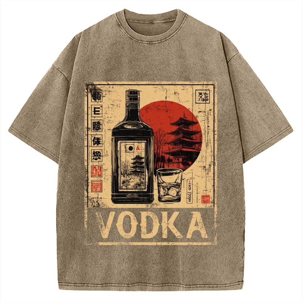 Japanese Vodka Sake Alcohol & Pagoda Vintage Washed T-shirt