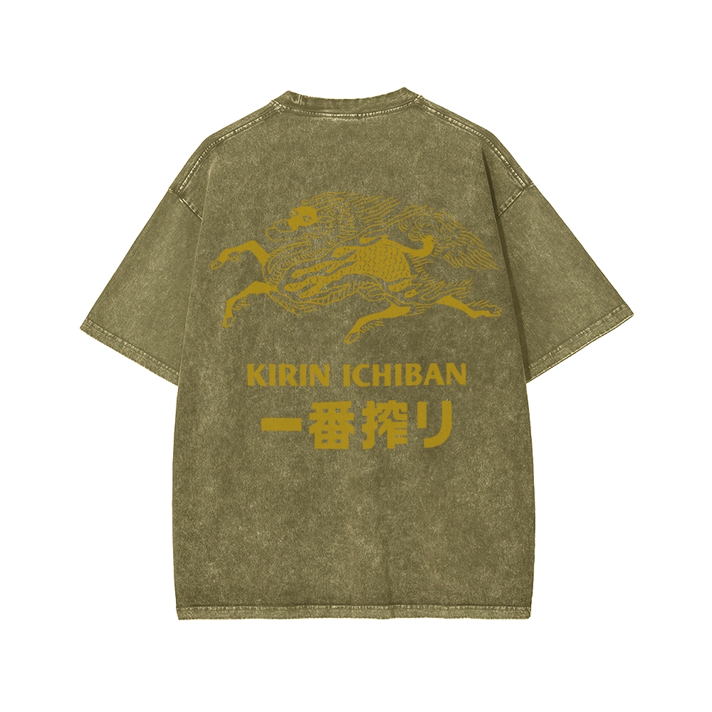 KIRIN ICHIBAN 一番搾り Front And Back Printing Washed T-shirt
