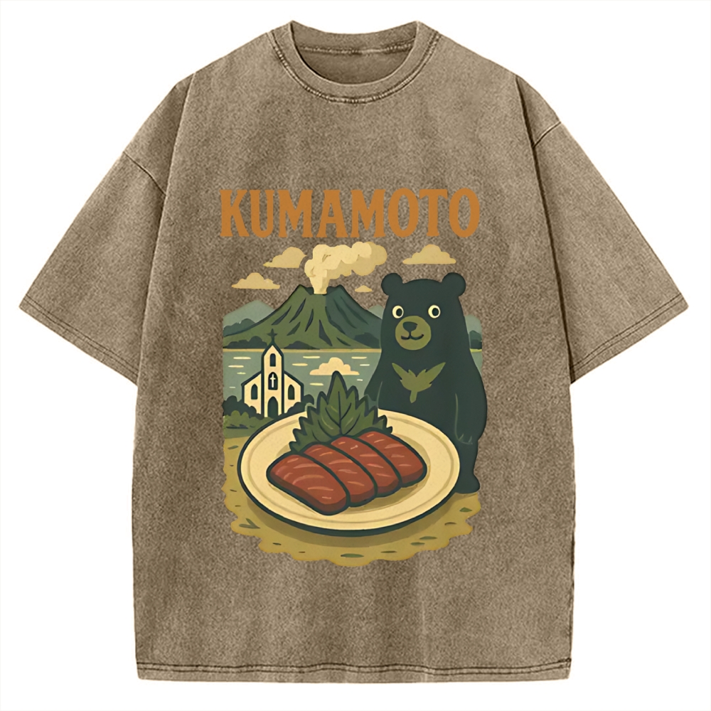 Kumamoto Mount Aso Black Bear Vintage Washed T-shirt
