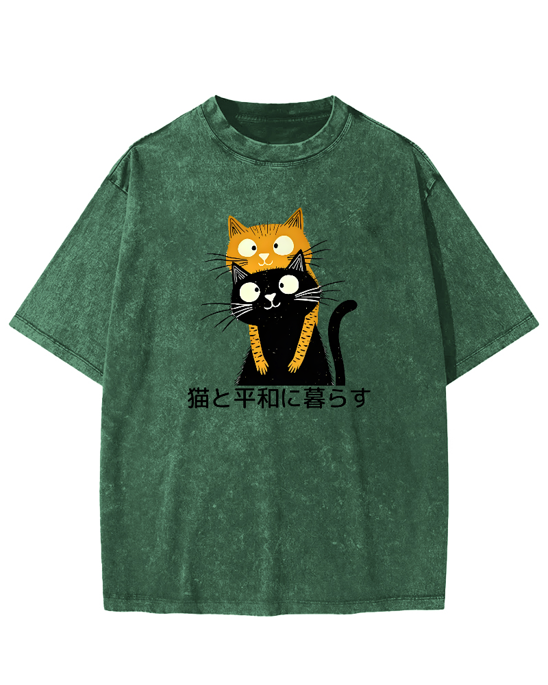 Living in peace with cats Vintage Washed T-shirt