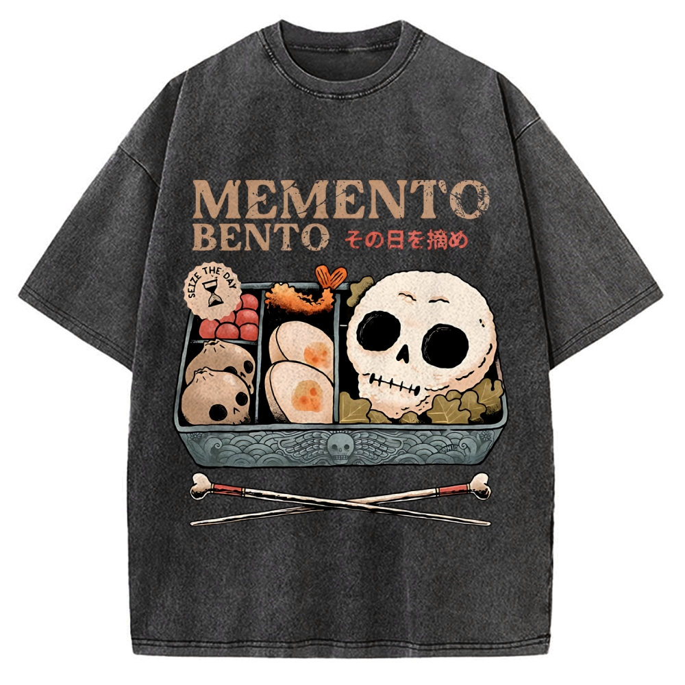 Memento Bento Japanese Halloween Skull Vintage Washed T-shirt